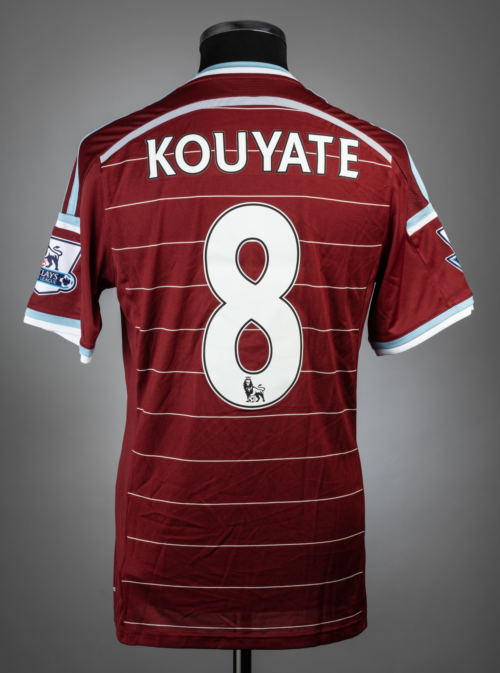 Cheikhou Kouyate claret & blue West Ham United Poppy no.8 jersey v Aston Villa, played at Upton Park, on 8th November 2014, match-issue, Adidas, short-sleeved with BARCLAYS PREMIER LEAGUE sleeve badges, with applied red poppy badge printed with 1914-2014 FOOTBALL REMEMBERS, club crest and sponsor logo, reverse lettered KOUYATE, size M This fixture resulted in a 0-0 draw.