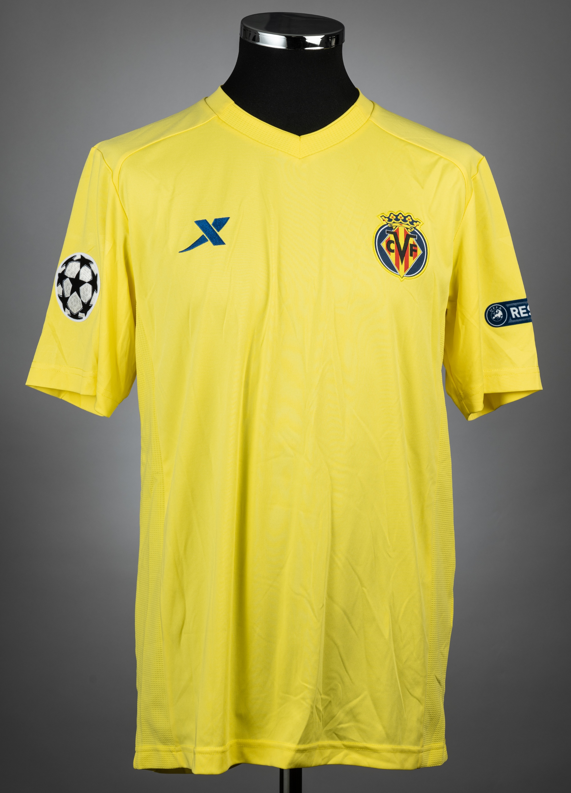 Mario Gaspar yellow Villarreal UEFA Champions League no.14 jersey v Manchester City, played at Etihad Stadium, on 18th October 2011, match-issue, Xtep, short-sleeved with UEFA STARBALL and RESPECT sleeve badges, club crest, reverse lettered MARIO, size XL Manchester City defeated Villarreal 2-1.