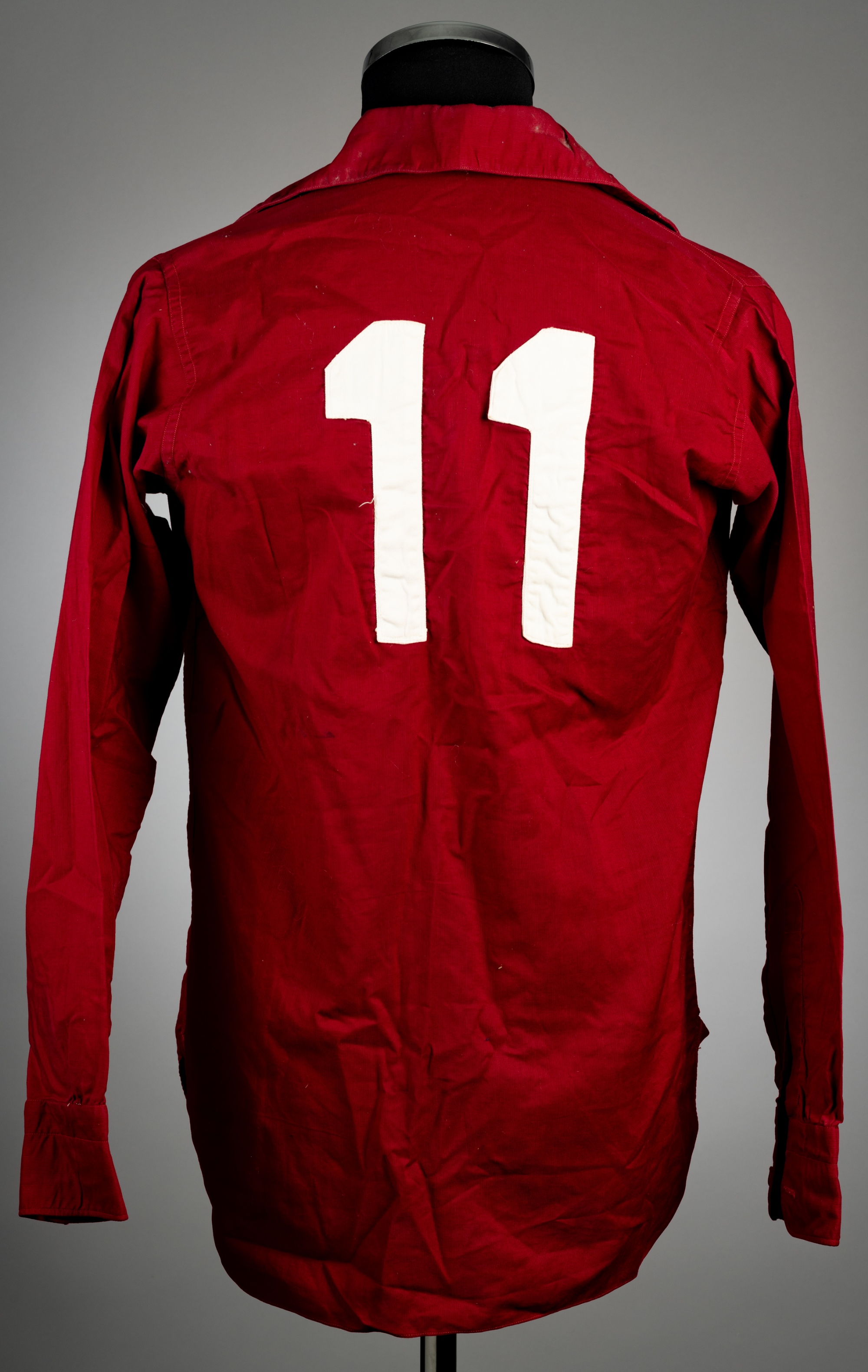 A very unusual dark red Portuguese no.11 football shirt, by Adidas, with retailers label for Fernando Peyroteo of Lisbon neck label, long-sleeved wit