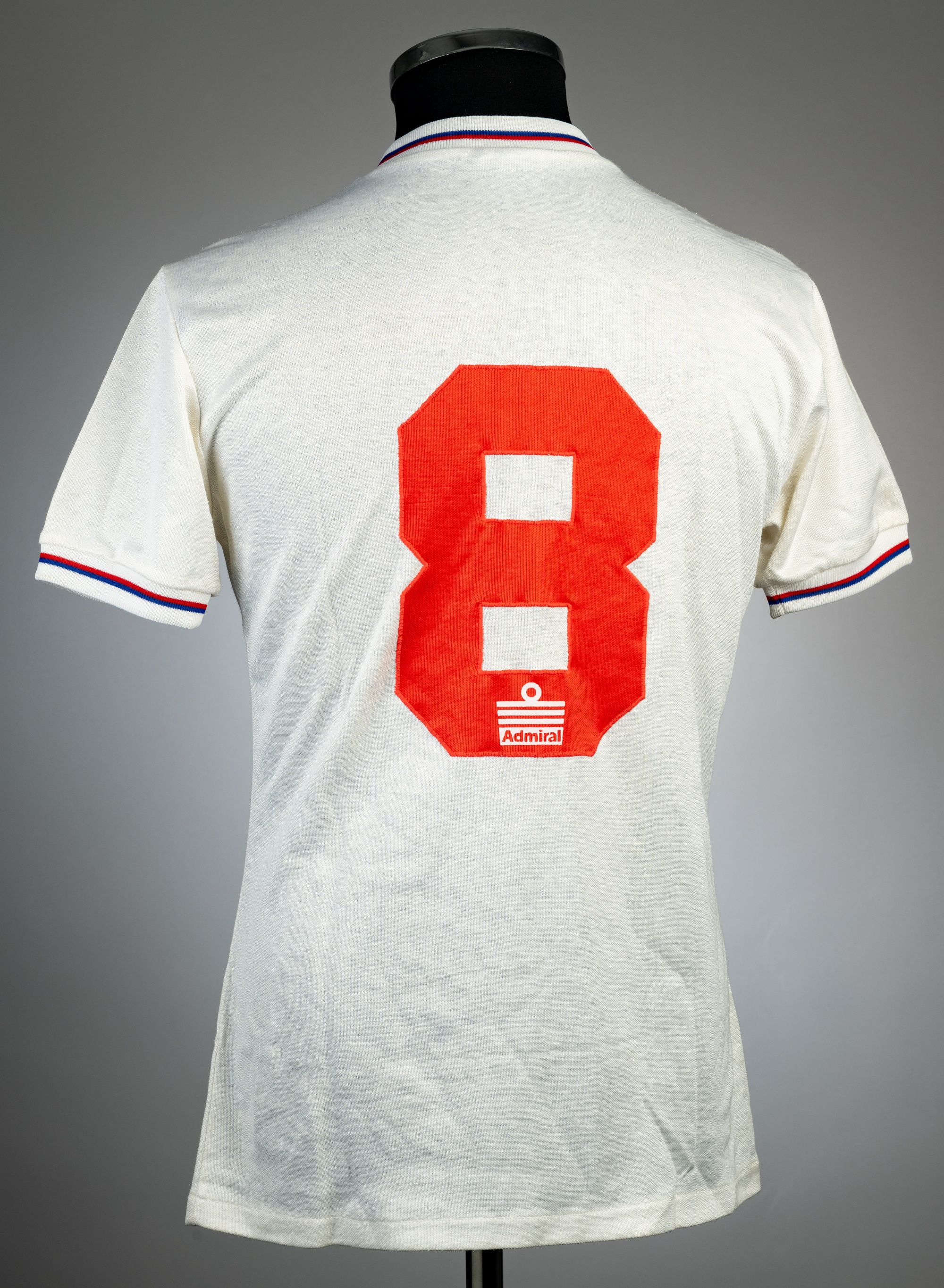 White England Intermediate no.8 home jersey, circa early 1980s, Admiral, short-sleeved with three lion Intermediate badge and red Admiral badge, reve
