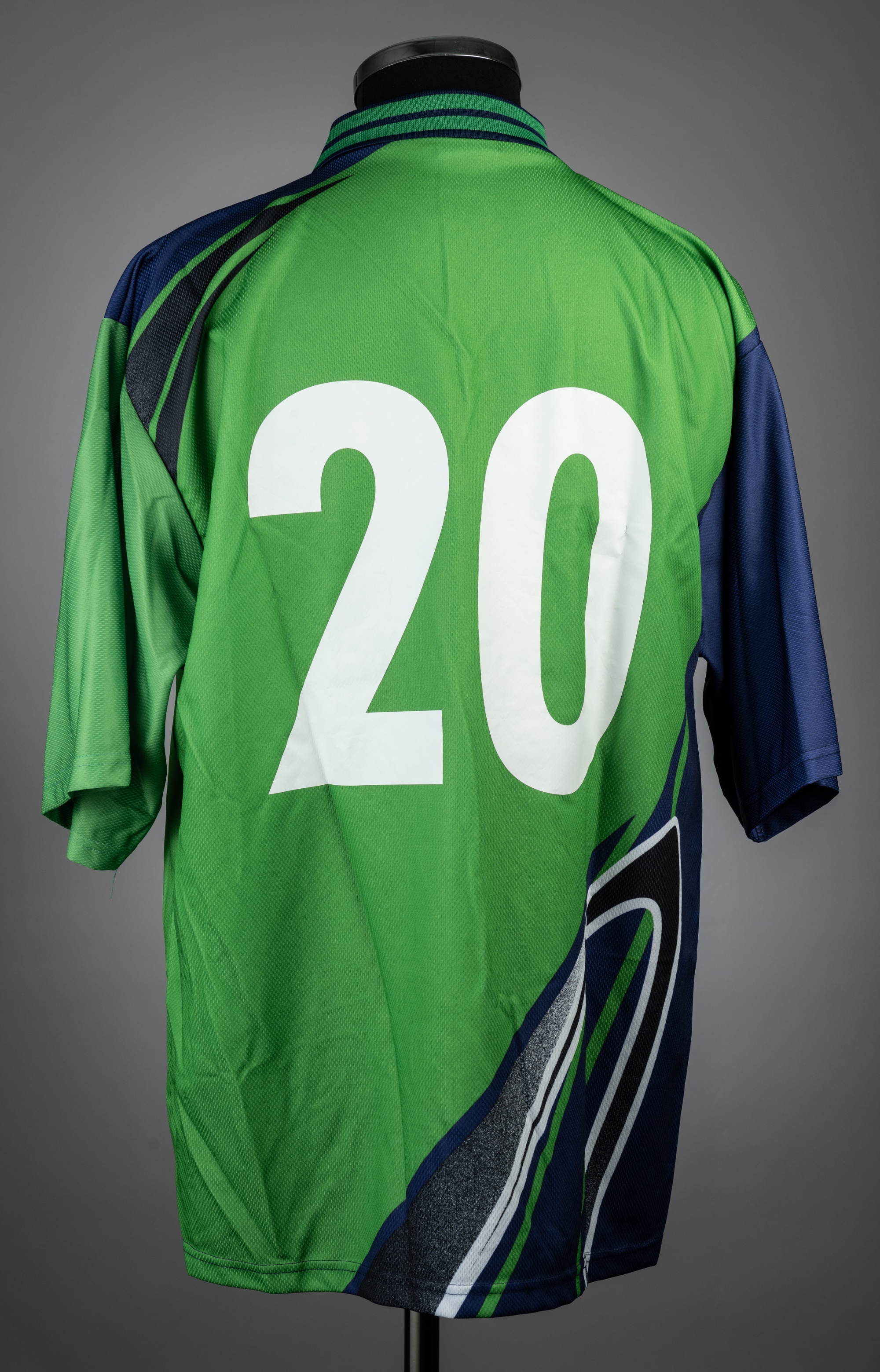 Squad-signed green & navy Northern Ireland UEFA European Qualifier no.20 jersey v Moldova, played at Windsor Park, 18th November 1998, match-issue, O