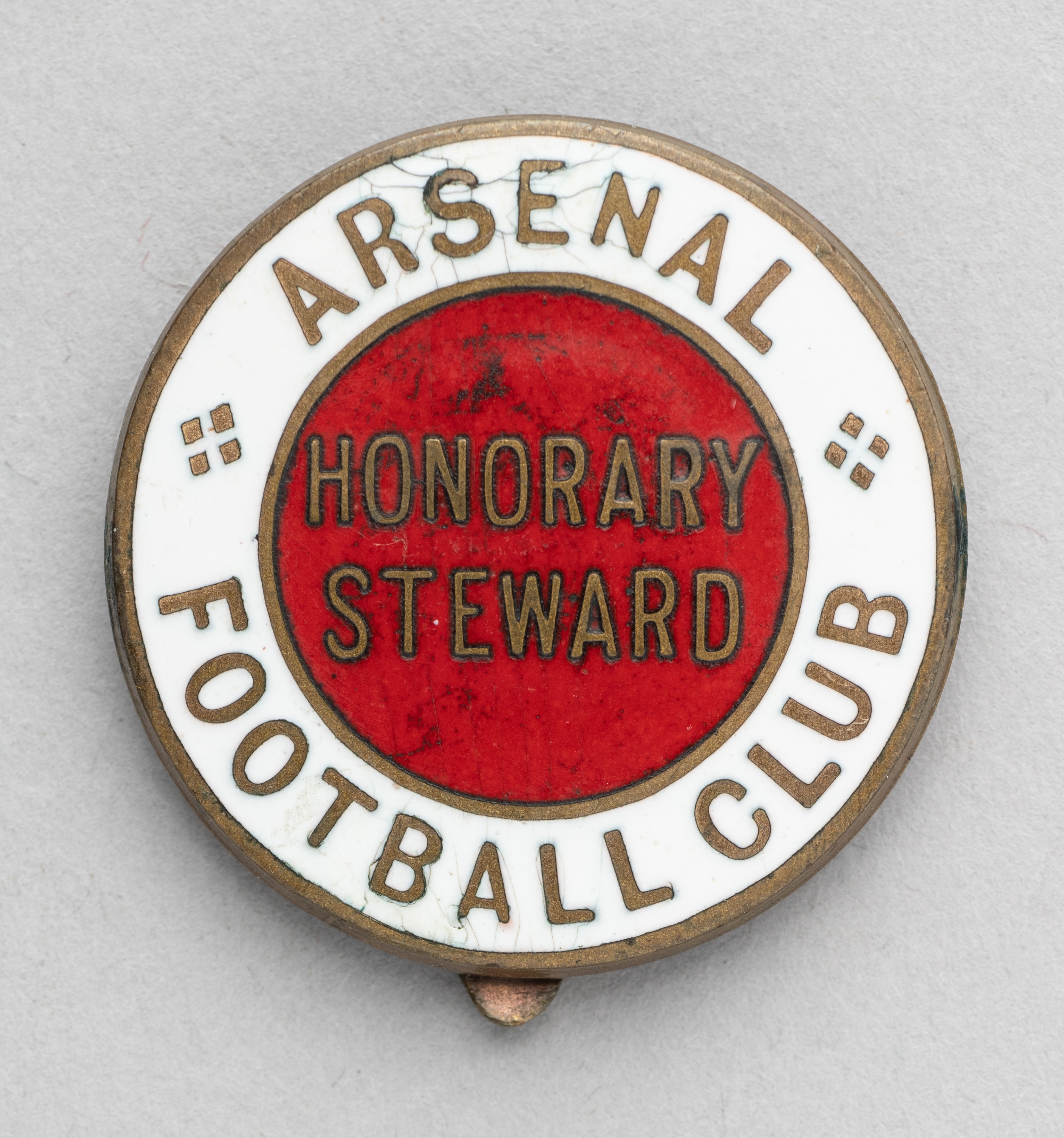 Arsenal Football Club Honorary Steward's badge, in gilt-metal & enamel, original button hole fastening to reverse