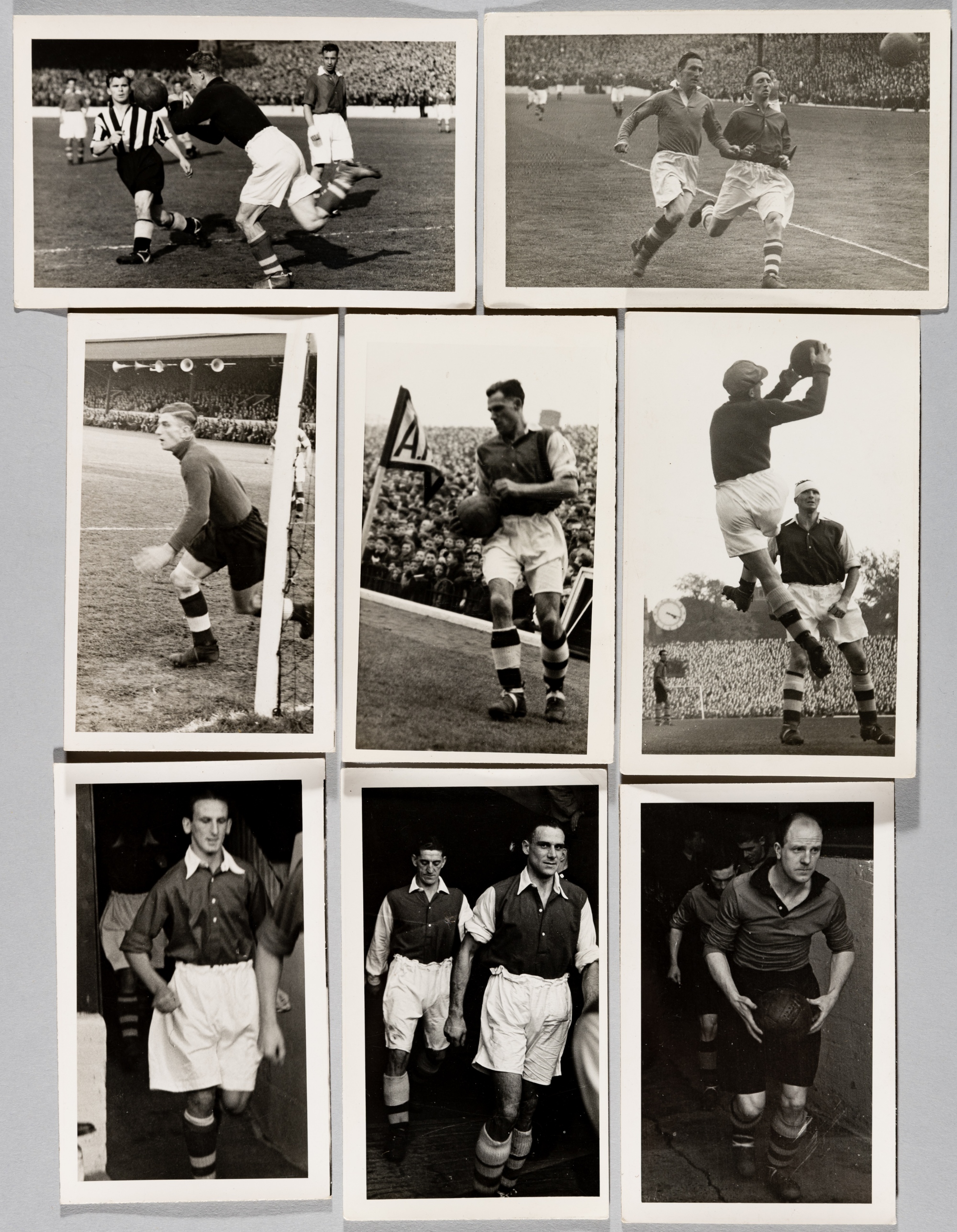 FOOTBALL POSTCARDS 1946-1949, COLLECTION OF 16 PLAIN BACK B&W PHOTOGRAPHIC POSTCARDS, INCLUDING: Arsenal F.C. Players inc: Joe Mercer (with Don Roper), Ian McPherson, Ronnie Rooke and George Swindin. Also, Joe Bacuzzi, George Hardwick, Stan Mortensen, Jackie Milburn, Stan Cullis, Sam Bartram (two different), Charlie Vaughan, Jimmy Harris etc. Publisher unknown. VG Condition.