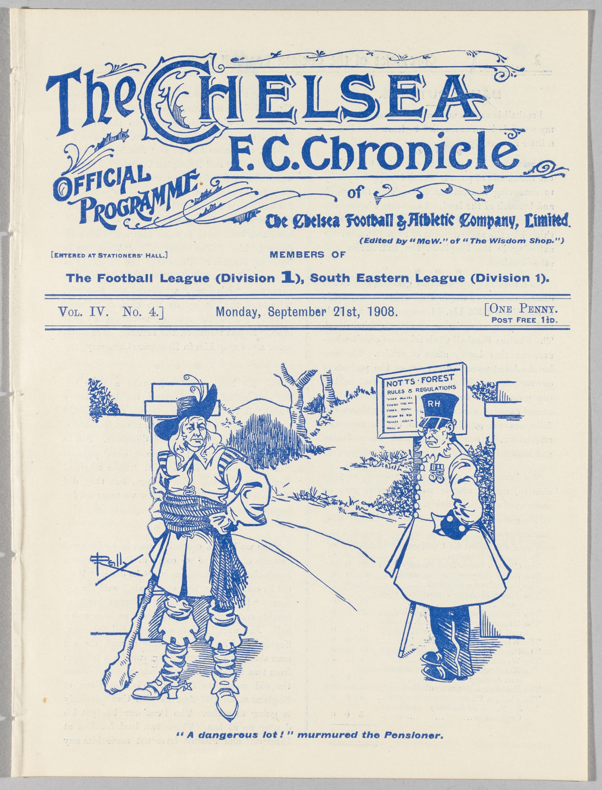 Programme Chelsea v Nottingham Forest 21st September 1908, Ex Bound Volume