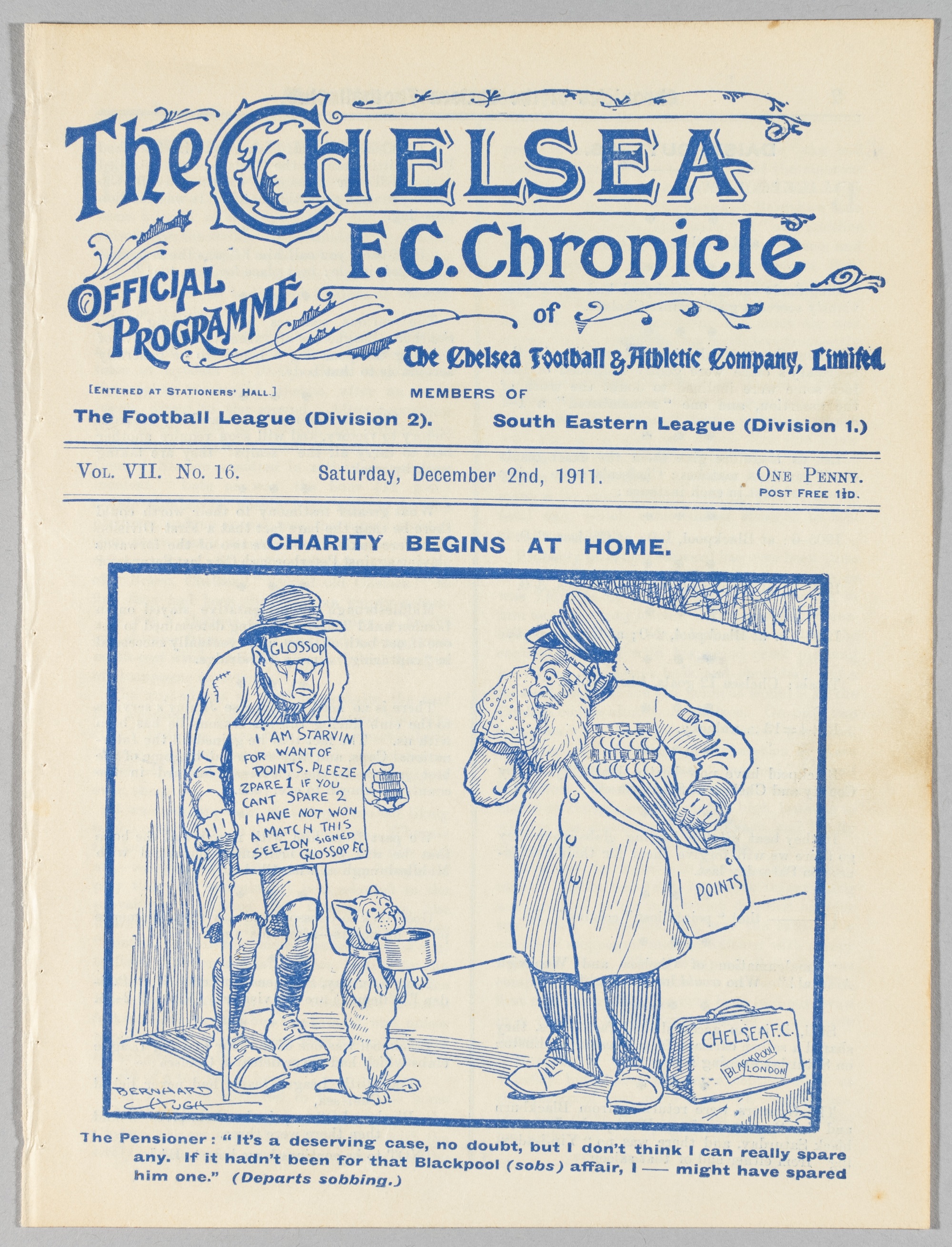 Programme Chelsea v Glossop 2nd December 1911, Ex Bound Volume