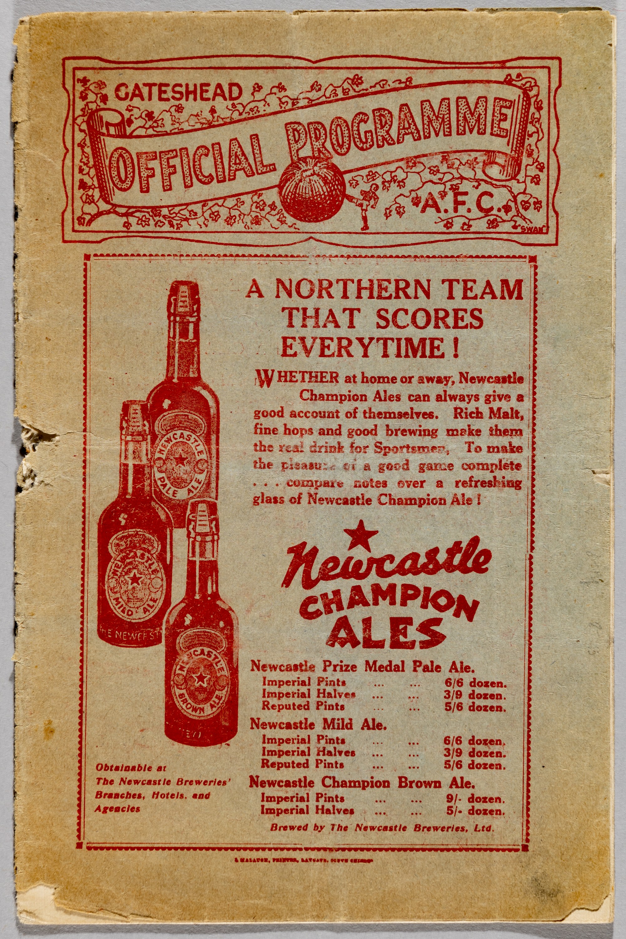 Very rare Gateshead programme v Doncaster Rovers, 30th August 1930, first ever programme issued by Gateshead in 1929-30 season, they were known as So