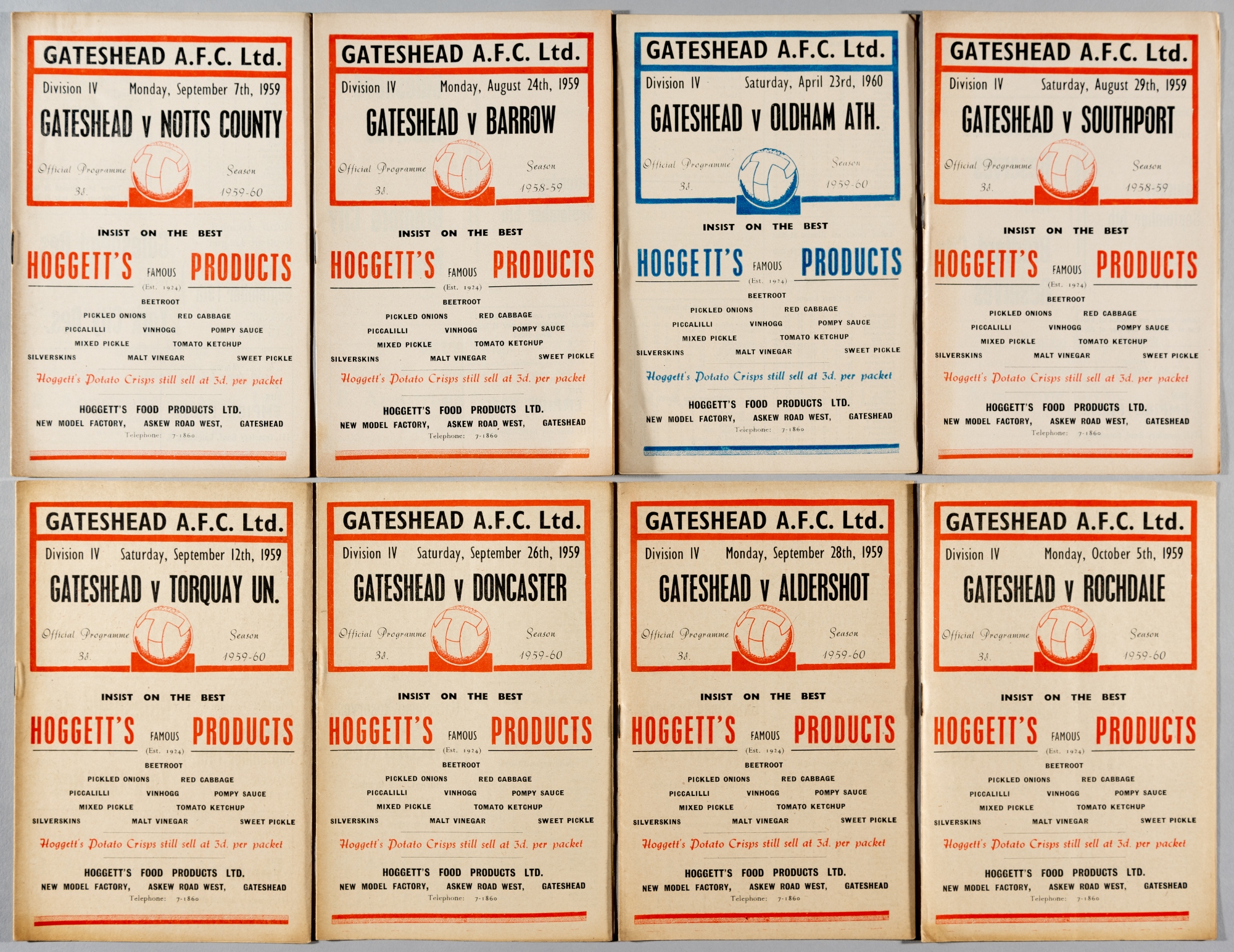 Gateshead last season 1959-60 home programmes, includes v Halifax FAC, missing v Walsall, (23), not v Barrow, v Southport season shown incorrectly i