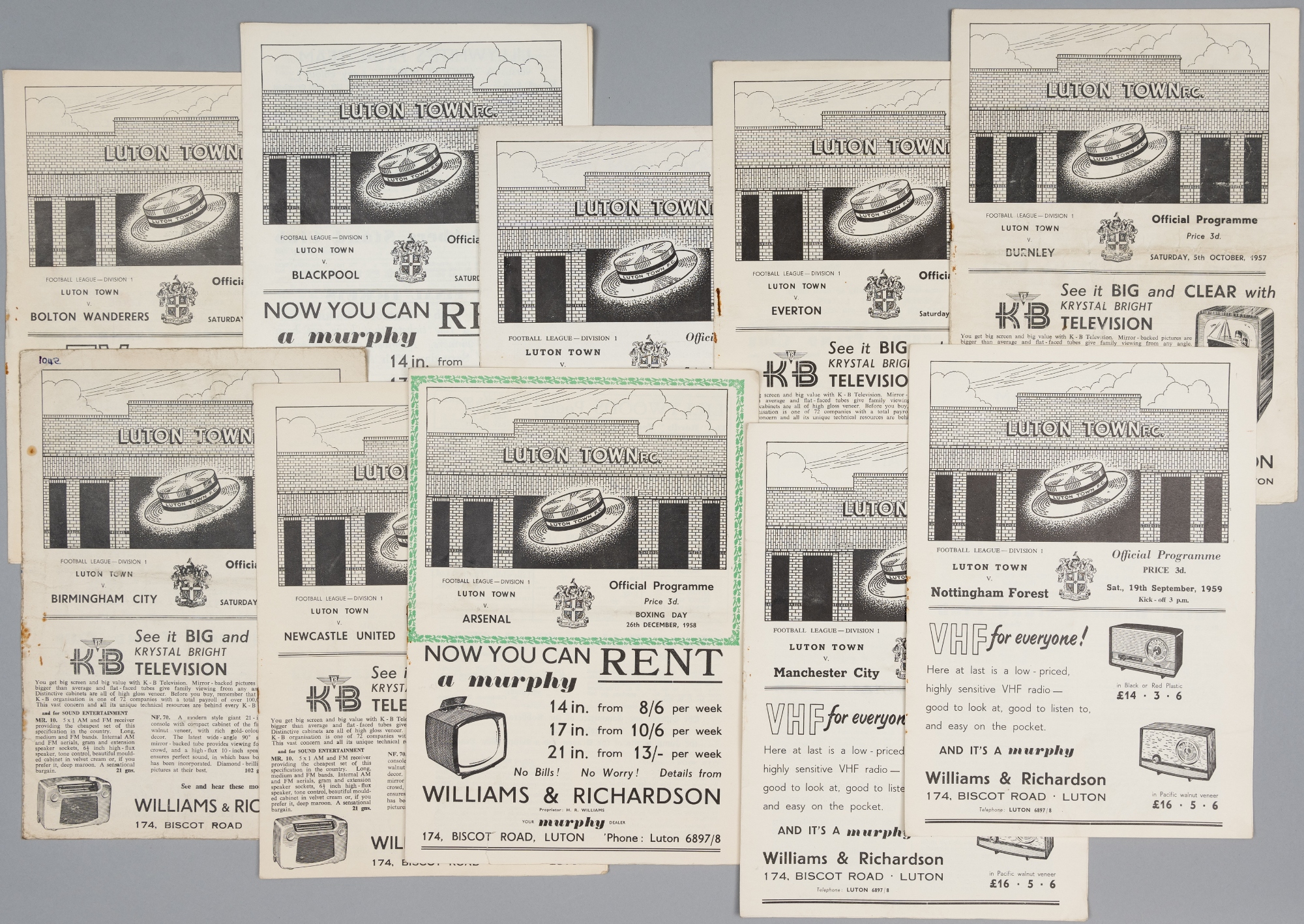 Luton Town home programmes, seasons 1957-58, 1958-59 and 1959-60, all full sets of League and Cup; season 1957-58 full set League (21); 1958-59 full
