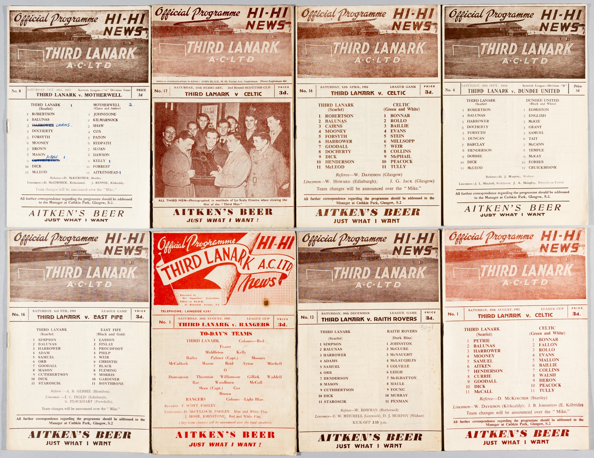 Third Lanark home programmes 1947-48 to 1961-62, including 1947-48 v Rangers League Cup; 1949-50 v Celtic Scottish Cup; 1950-51 (2); 1951-52 (2); 195
