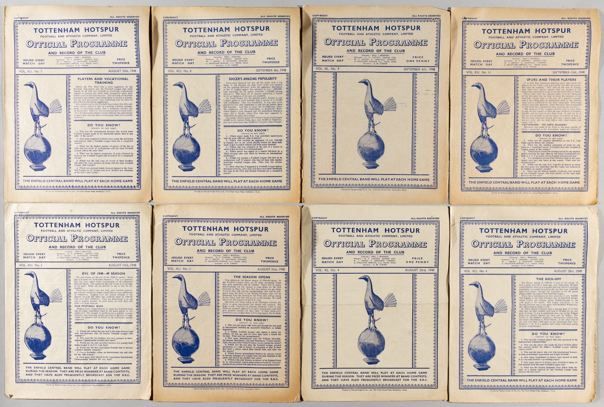 Tottenham Hotspur programme collection, seasons 1946-47 (33), 1947-48 (41), 1948-49 (34), including League, Reserves, Trial matches, not checked for