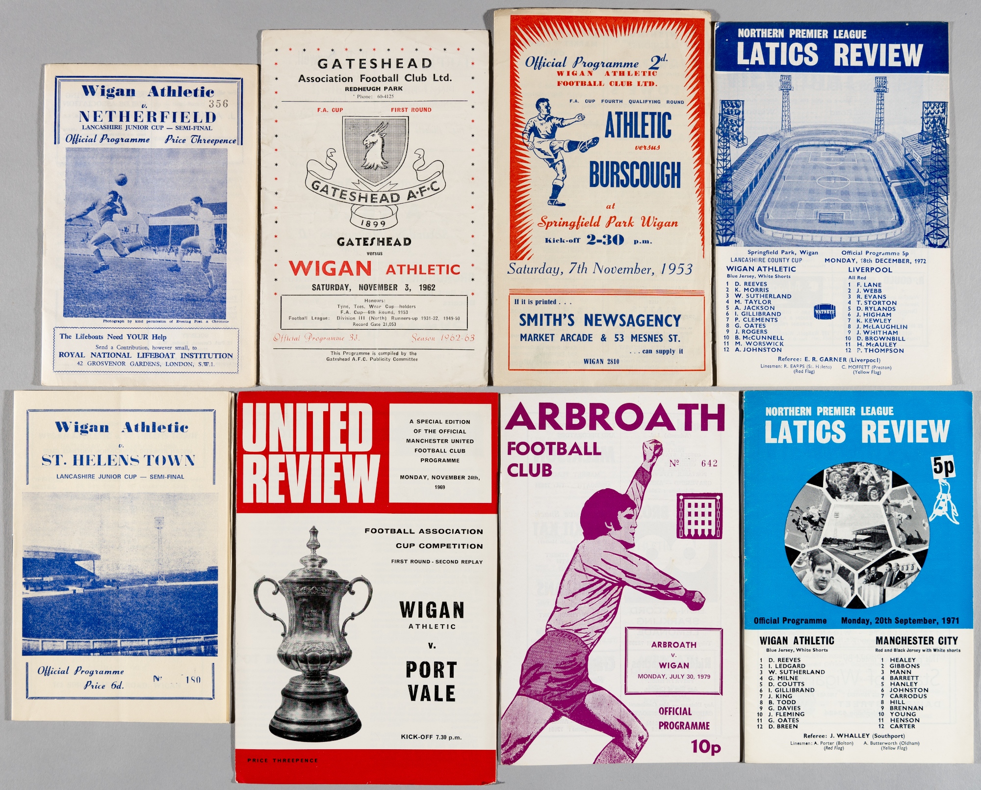 Wigan pre-League programme selection, 1950s-70s, includes v Burscough 7th November 1953, v Liverpool Lancs. C/Cup 18th December 1972, Gateshead v Wig