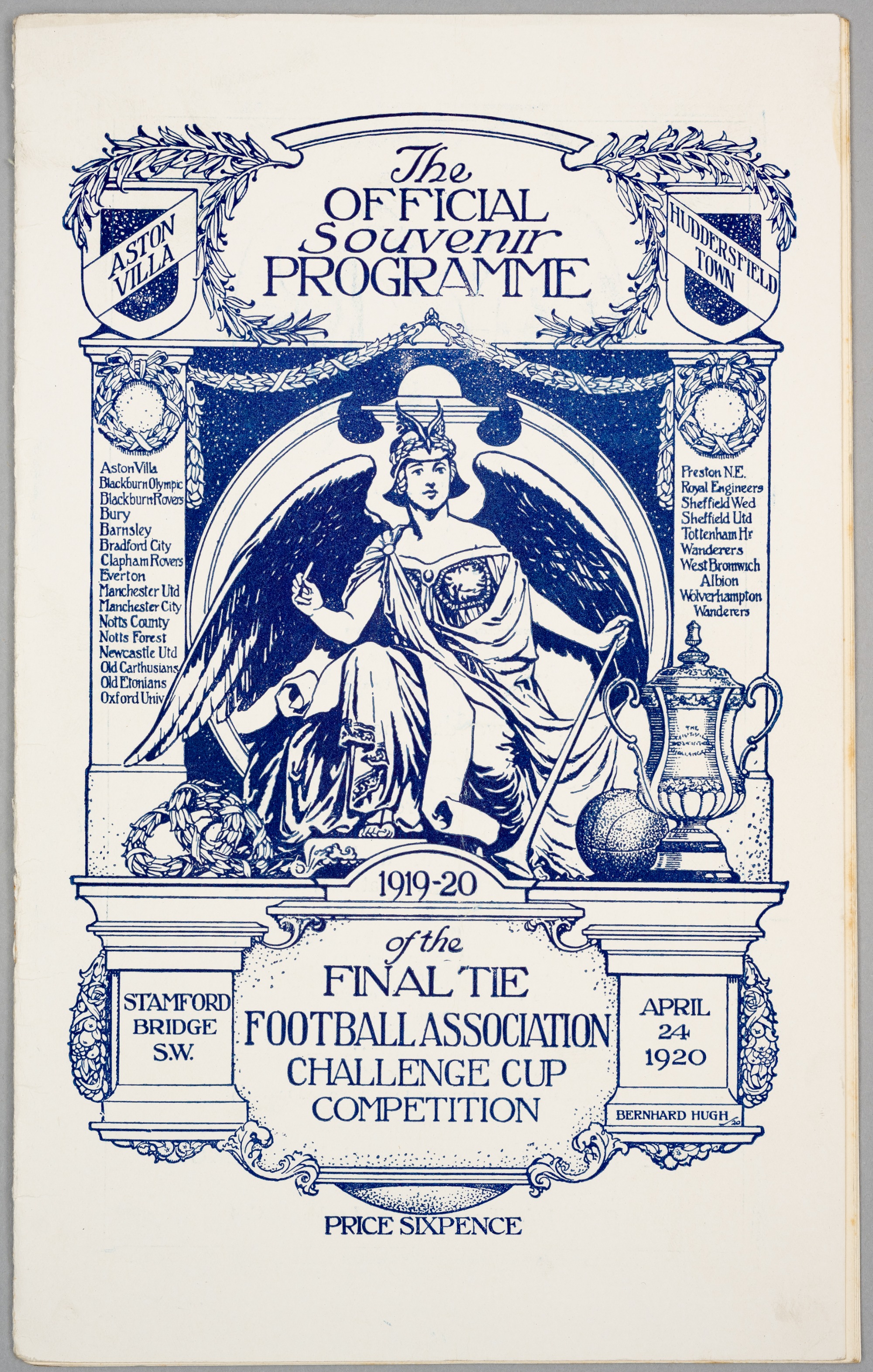 F.A. Cup final programme Aston Villa v Huddersfield Town, played at Chelsea's Stamford Bridge ground, 24th April 1920, 20-pages, staples removed, cov