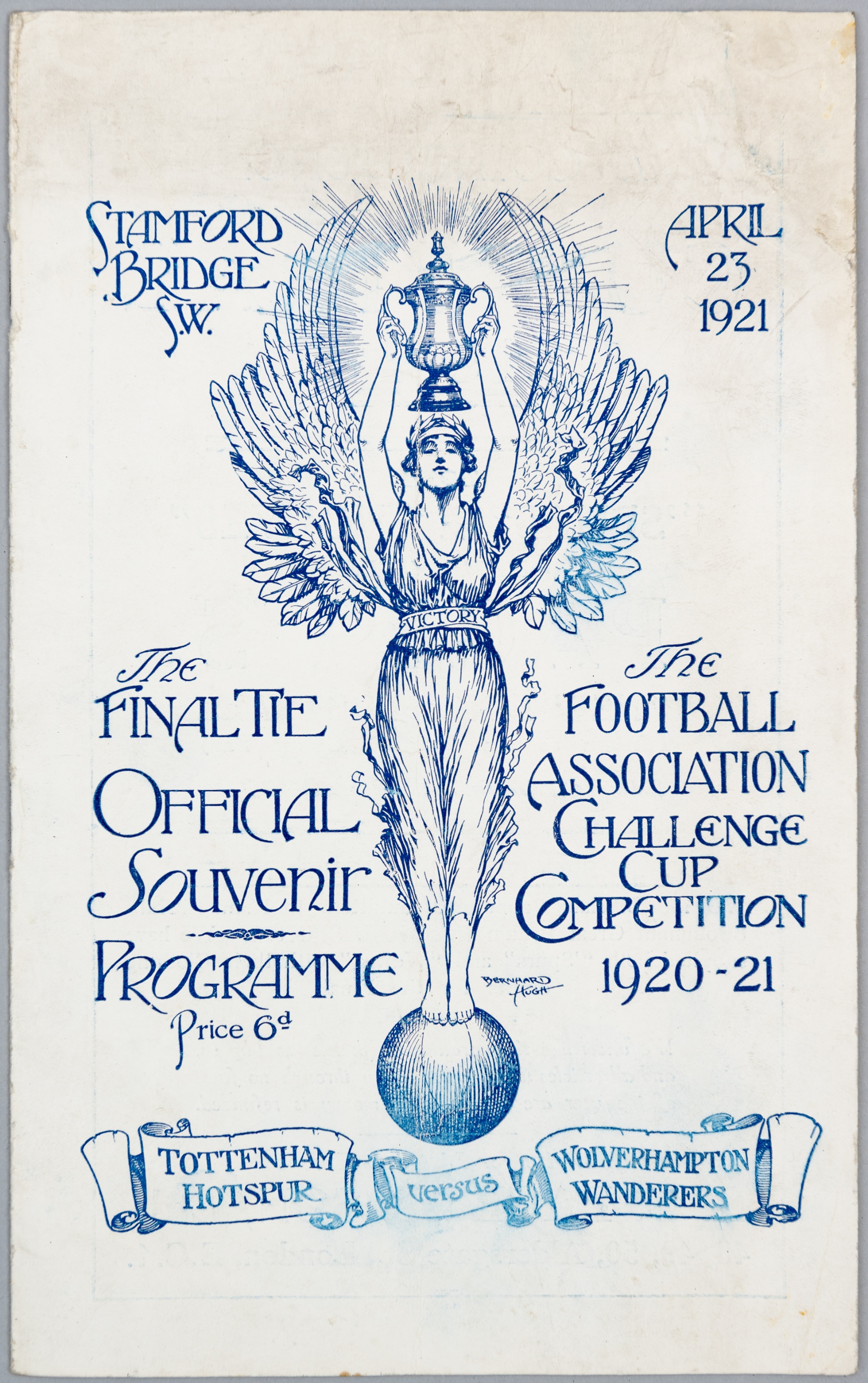 F.A. Cup Final programme Tottenham Hotspur v Wolverhampton Wanderers, played at Chelsea's Stamford Bridge ground, 23rd April 1921, 16-pages, slight creases, rust staple marks to centre page