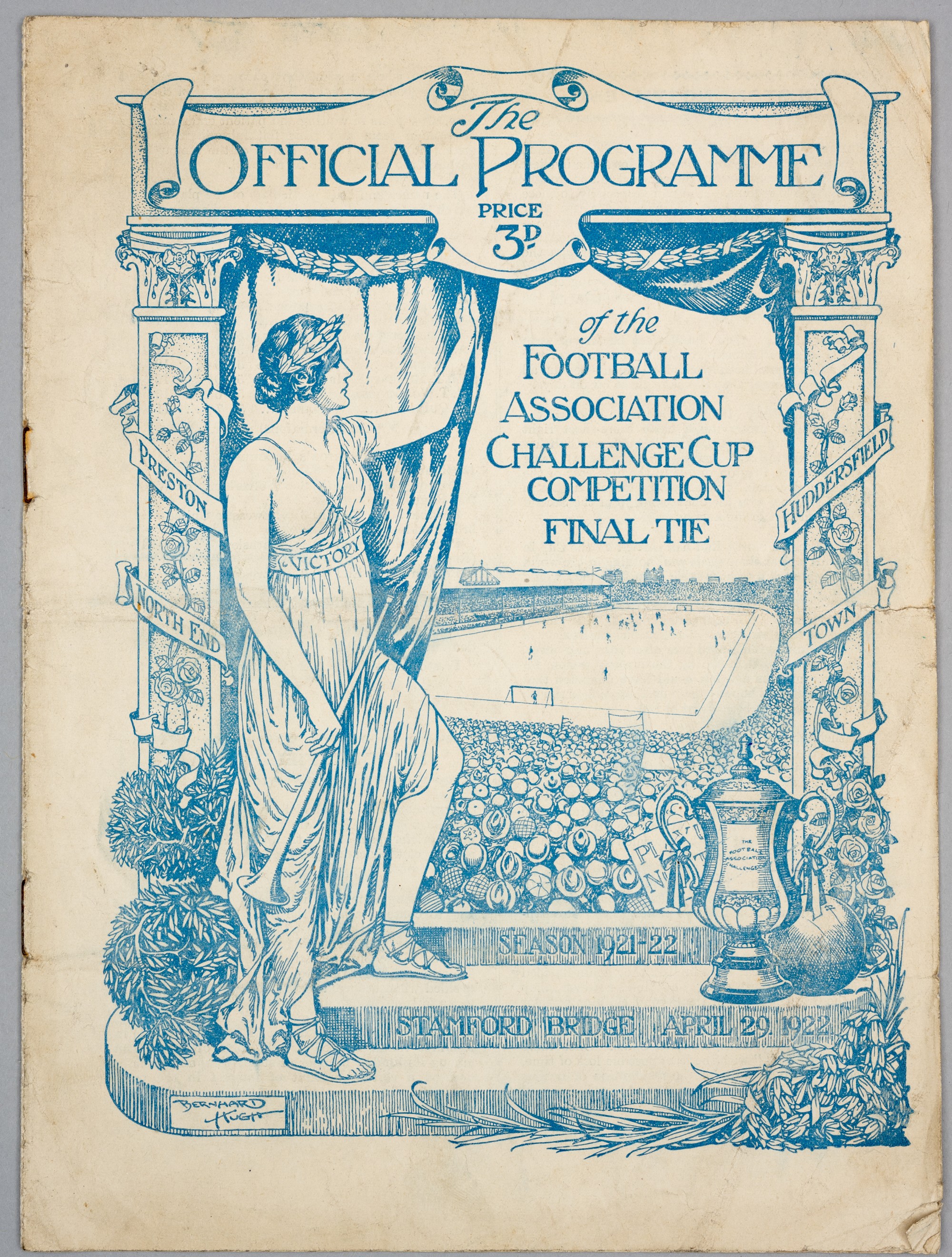 F.A. Cup Final programme Huddersfield Town v Preston North End, played at Chelsea's Stamford Bridge ground, 29th April 1922, 8-pages, wear throughout