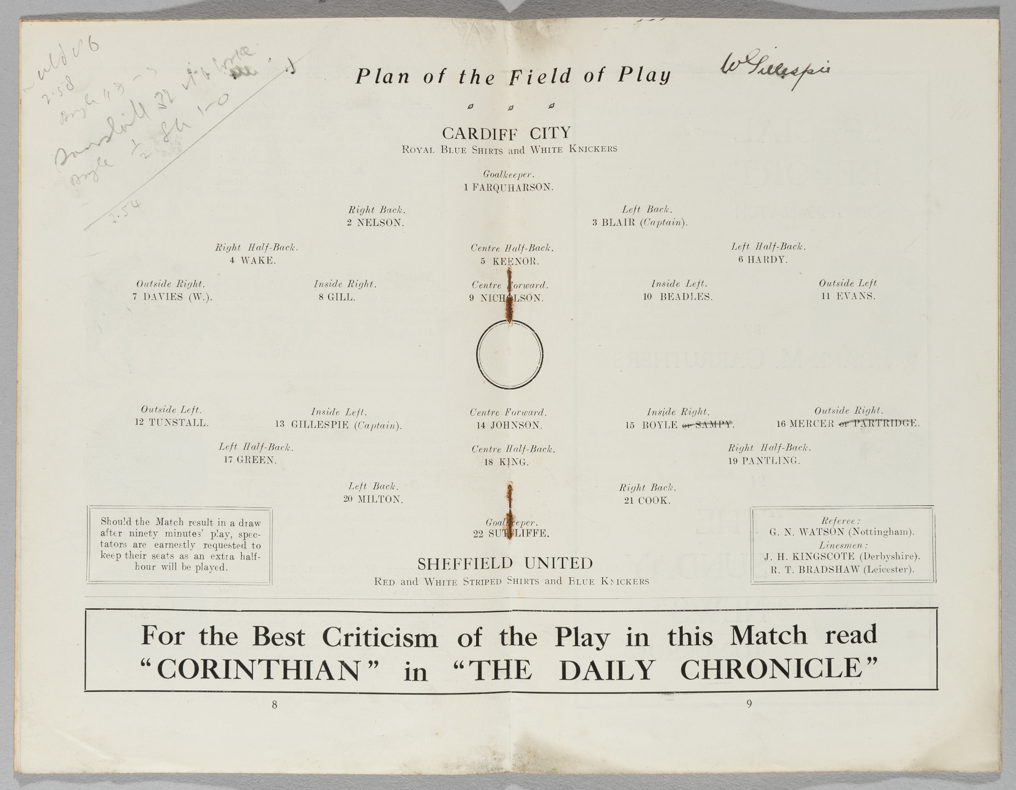 Signed F.A. Cup Final programme Cardiff City v Sheffield United, played at Wembley Stadium, 25th April 1925, 16-page programme with cream printed co