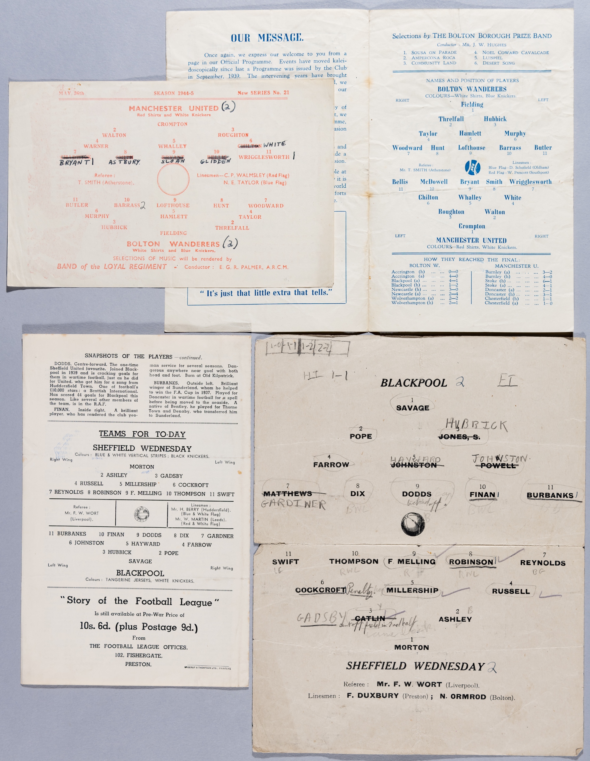 Wartime Football League North Cup Finals programmes, both legs home and away, including 1943 Blackpool v Sheffield Wednesday 1st May 1943; Sheffield
