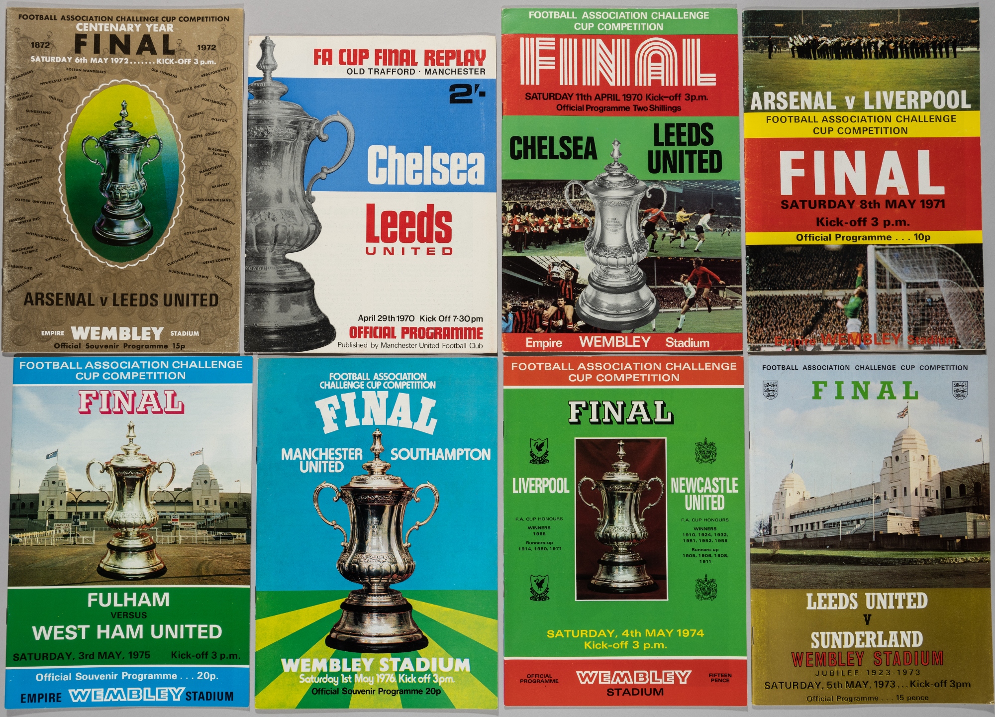 F.A. Cup Final programmes, 1970-87, complete run includes replays, Chelsea v Leeds United, played at Old Trafford 1970 replay, fair to good condition