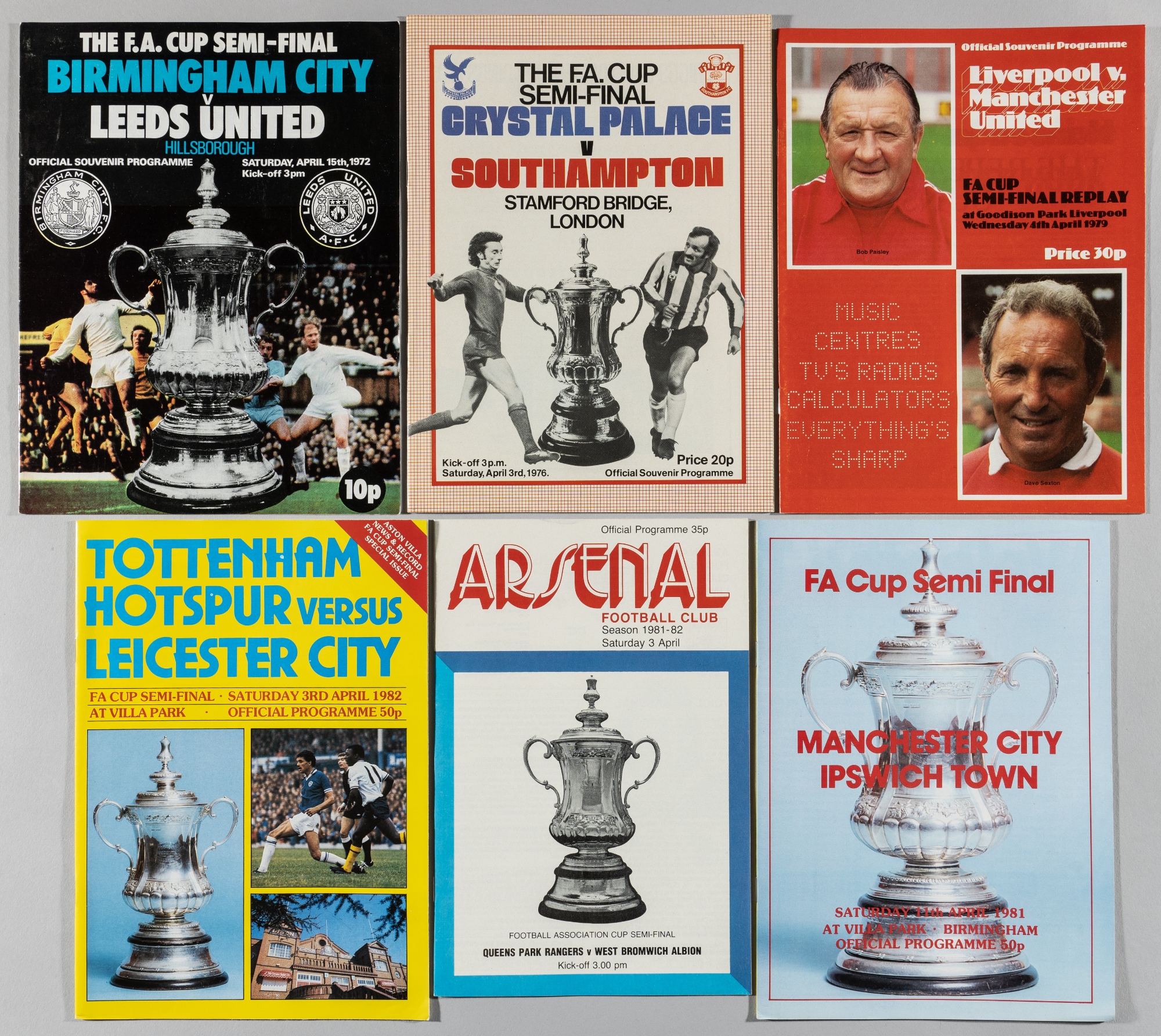 F.A Cup semi-final programmes, 1971-85, believed complete with replays, Derby County v Manchester United, 3rd April 1976; and further examples, major