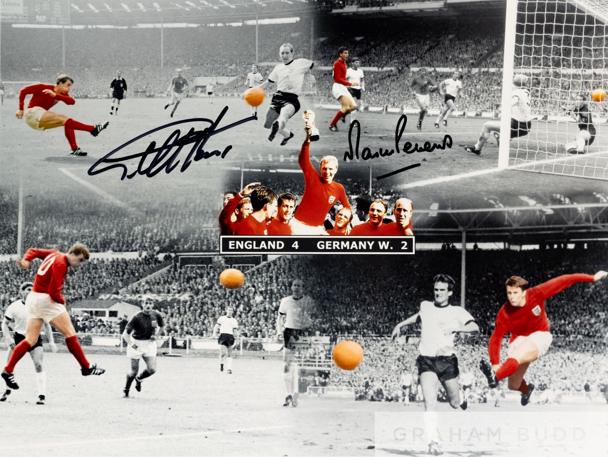Signed 1966 World Cup final goal scorers photographic montage