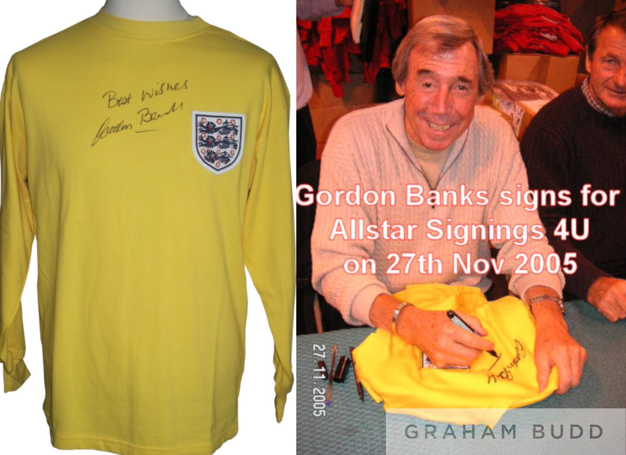 England 1966 World Cup replica Toffs shirt as worn in the final victory over West Germany signed by England goalkeeping legend Gordon Banks ex Leicester City and Stoke City goalkeeper