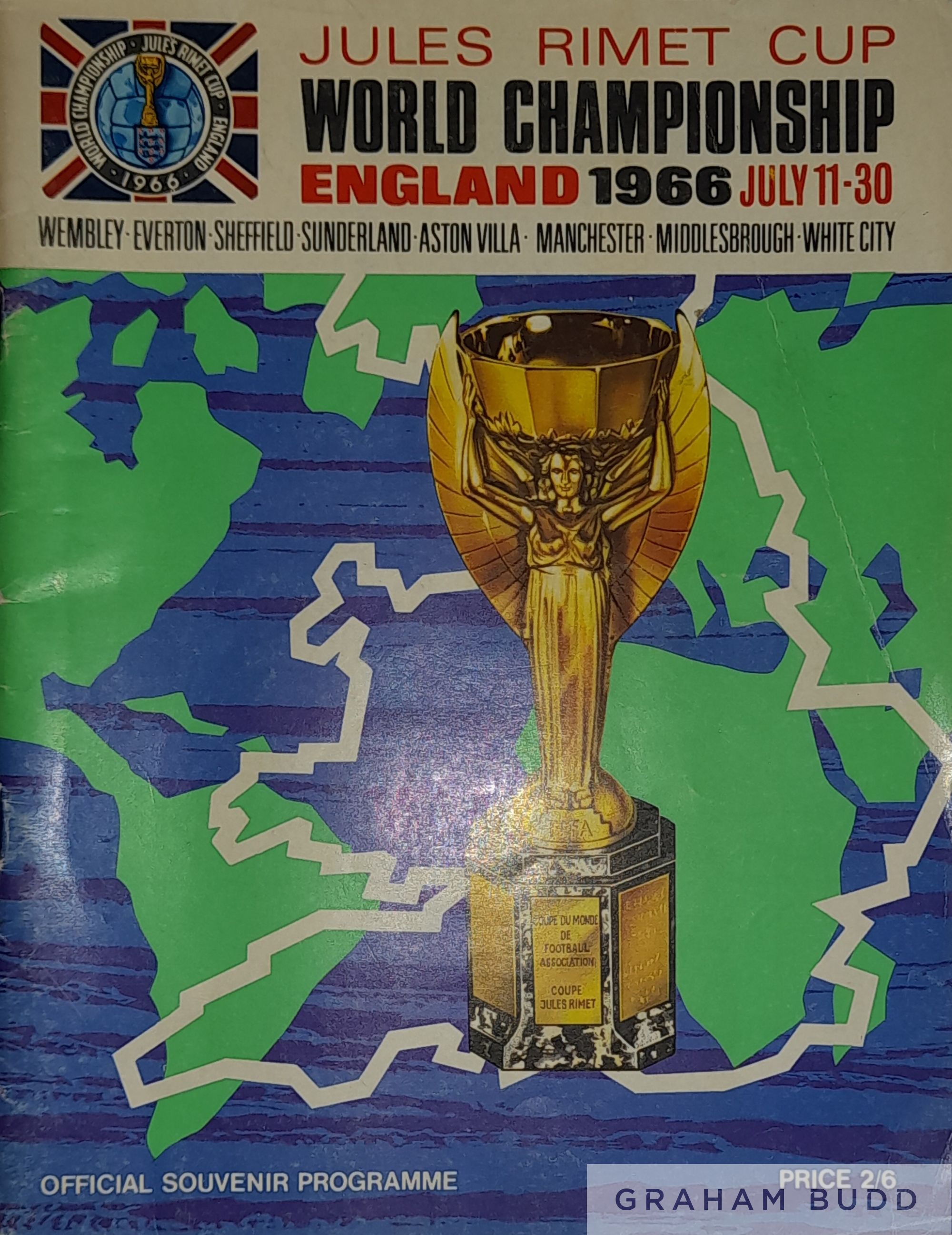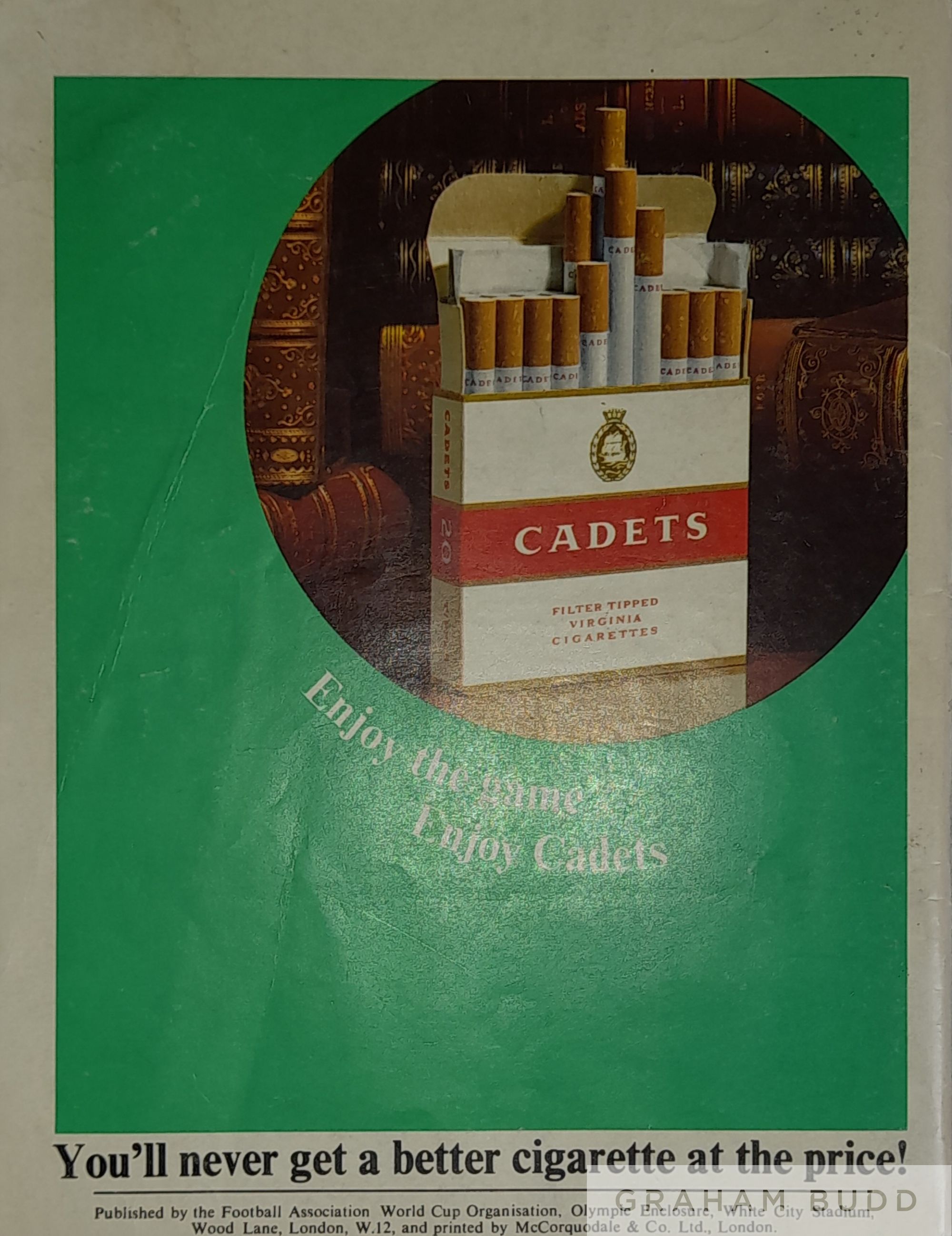 England 1966 World Cup Tournament programme hand signed by 23 players & staff to the blank notes page inside back cover, the autographs are Alan Ball, Geoff Hurst, Martin Peters, Gordon Banks, Roger Hunt, Jack Charlton, Nobby Stiles, Ray Wilson, George Cohen, Bobby Charlton, Ian Callaghan, Norman Hunter, John Connelly, Terry Paine, George Eastham, Gerry Byrne, Jimmy Greaves, Ron Springett, Peter Bonetti, Ron Flowers, Jimmy Armfield plus team doctor Dr Neil Phillips with England legend Johnny Haynes completing the list. In excellent condition throughout comes complete with COA
