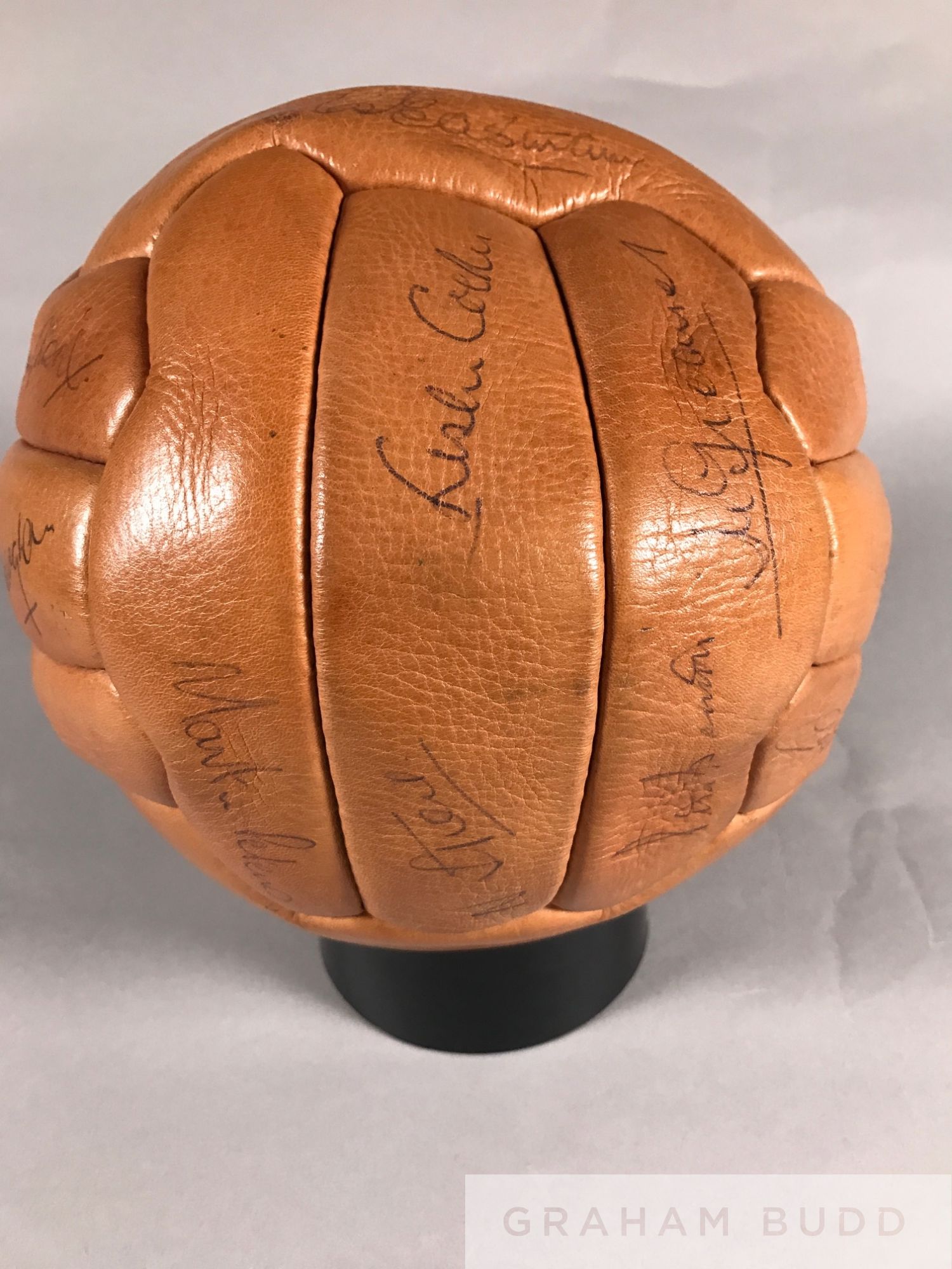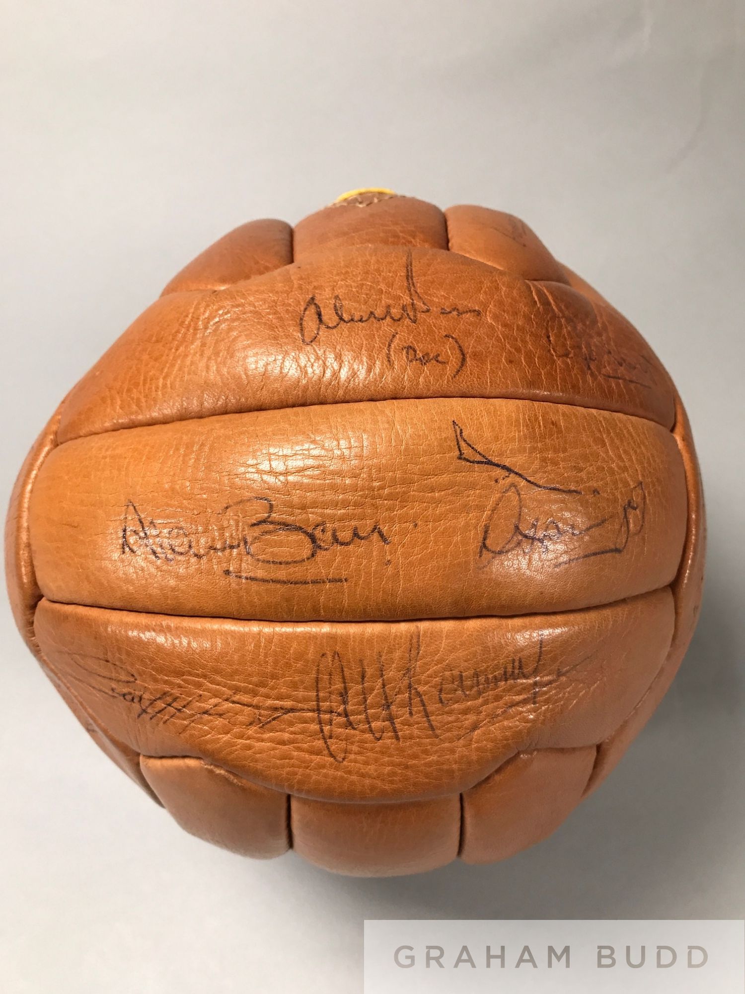 A 1966 World Cup retro football signed by the England squad and manager Alf Ramsey