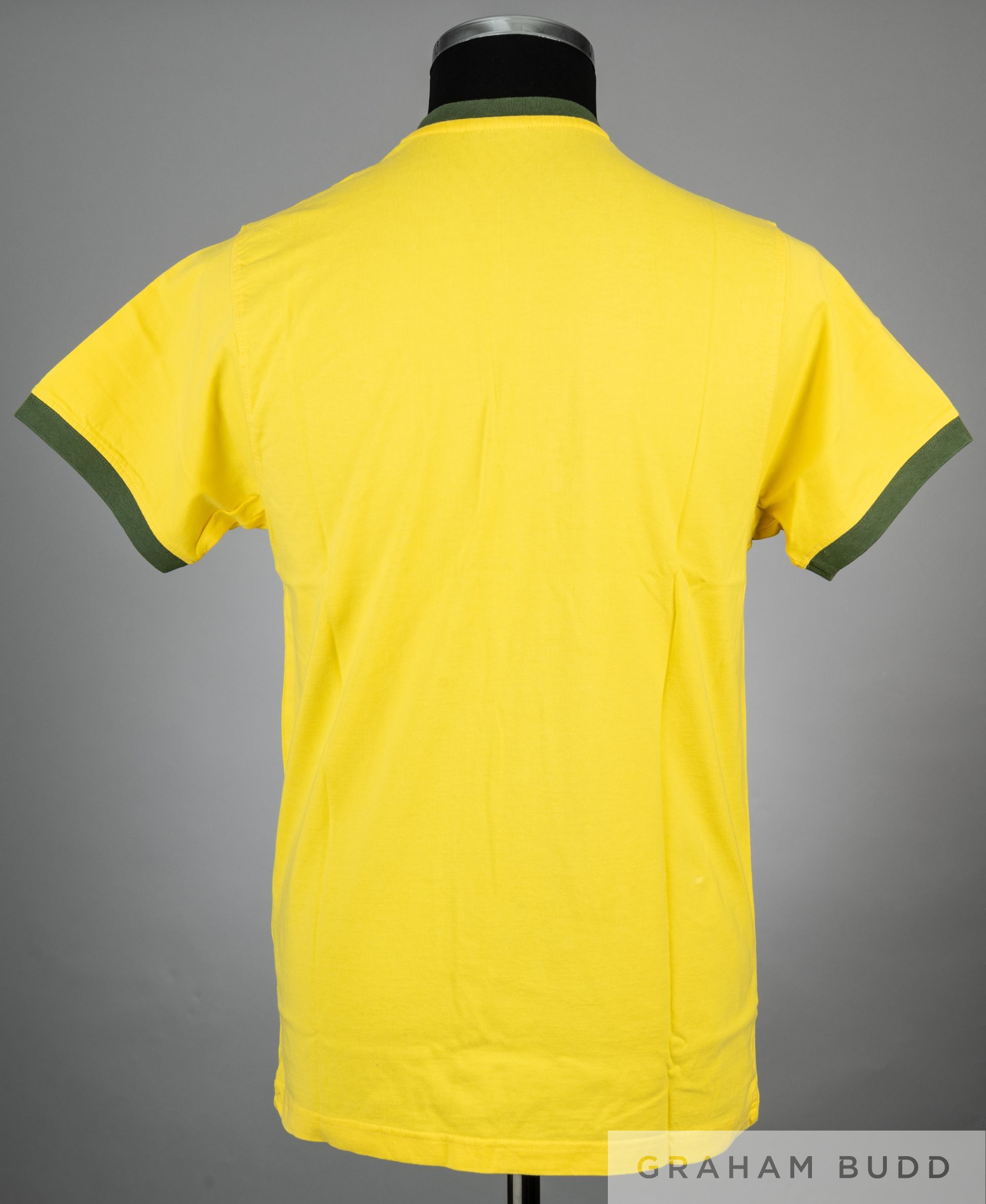 Pele signed yellow and green Brazil 1970 World Cup replica jersey