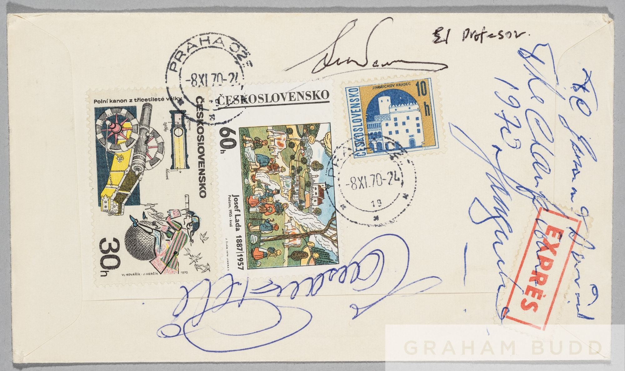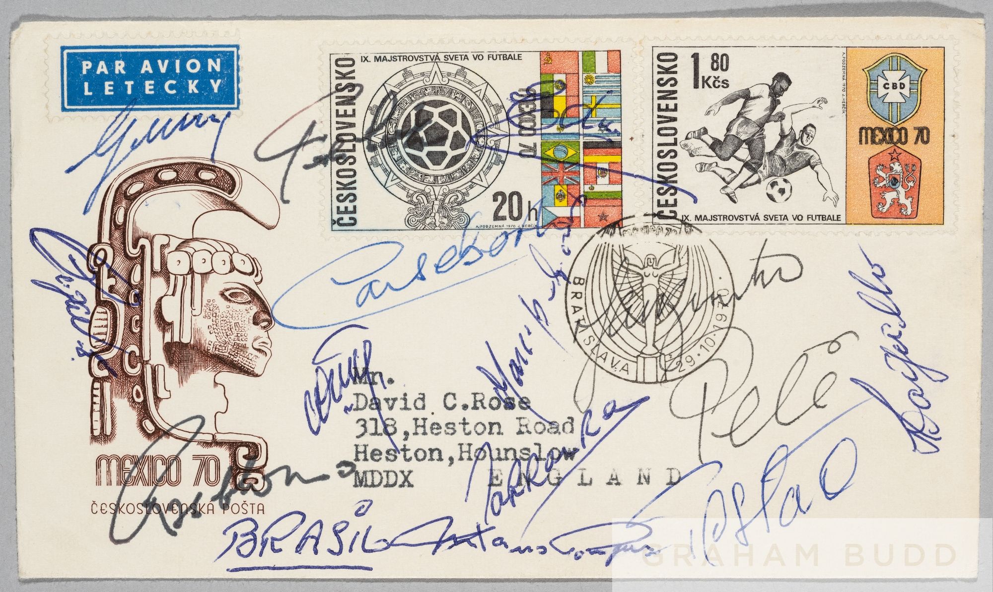 1970 World Cup First Day Cover signed by the Brazilian team, Czech issue, postmarked 29.10.70, 17 signatures in ink both sides, Pele (twice, one a full signature), Tostao, Zagallo, Edu, Gerson etc.