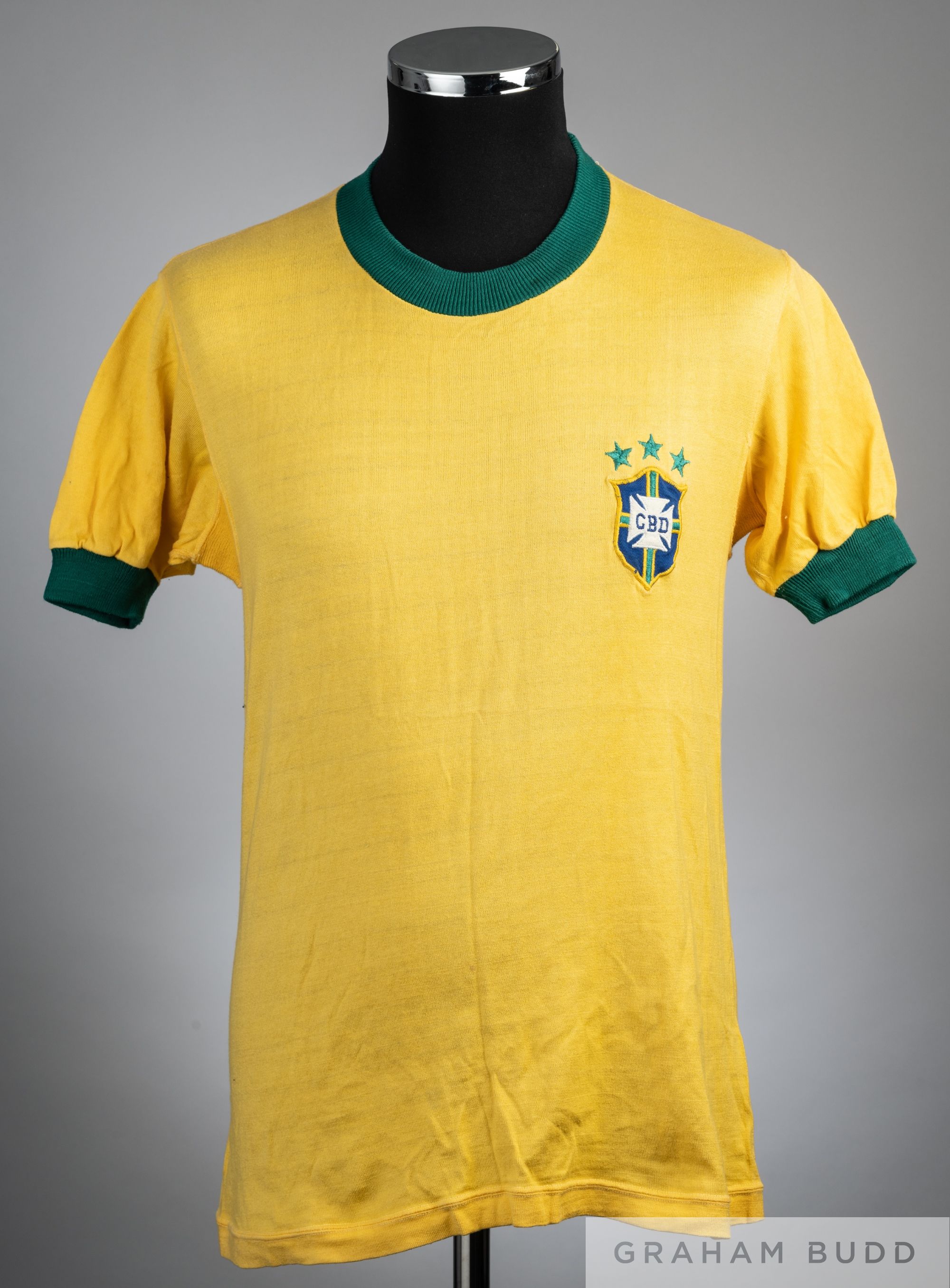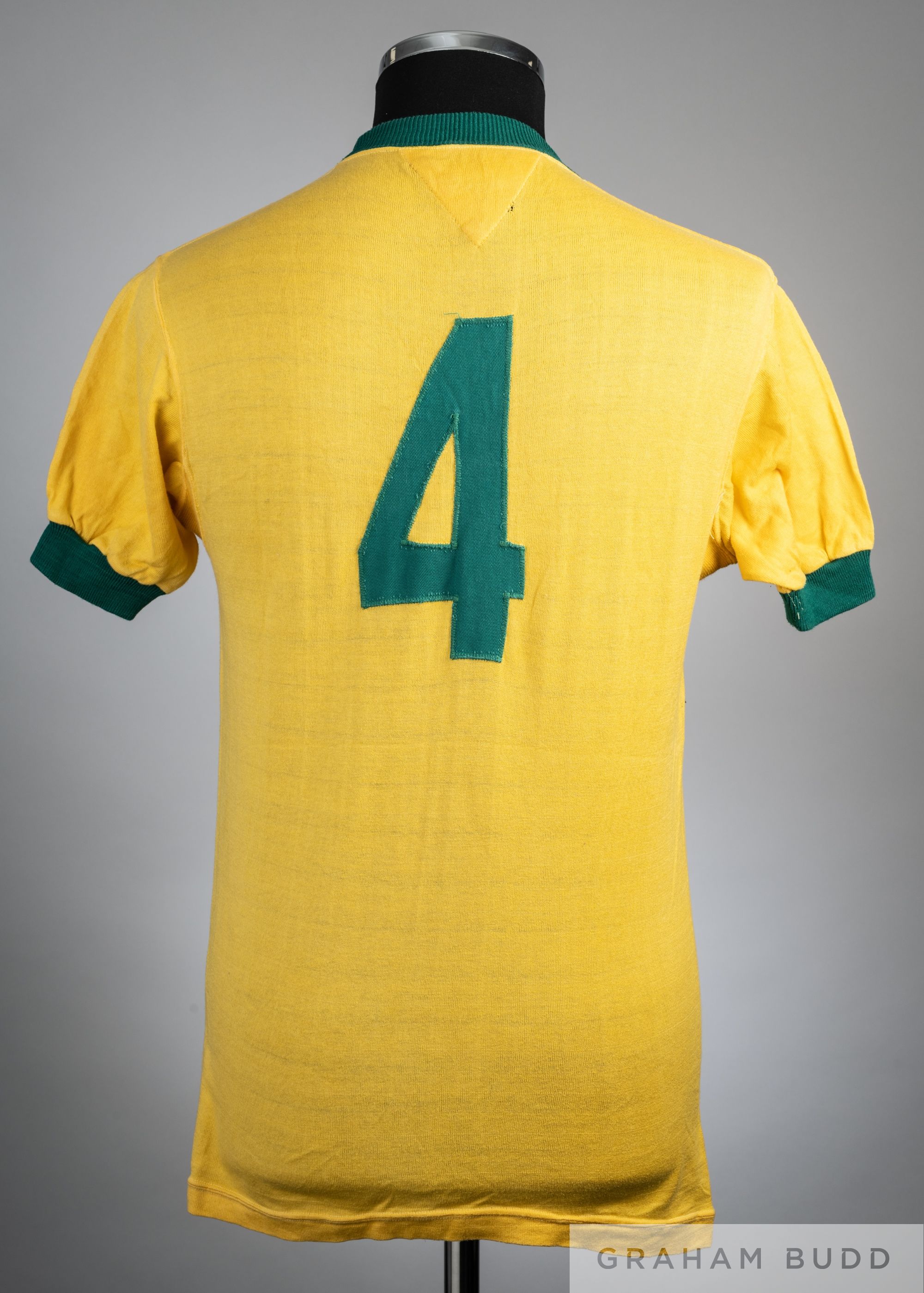 Ze Maria yellow & green Brazil 1974 World Cup no.4 jersey, player issue, Superball Athleta, short-sleeved with embroidered national emblem, reverse numbered 4, bears neck label Condition is good with little wear, slight thread pull on number on reverse and under arms
