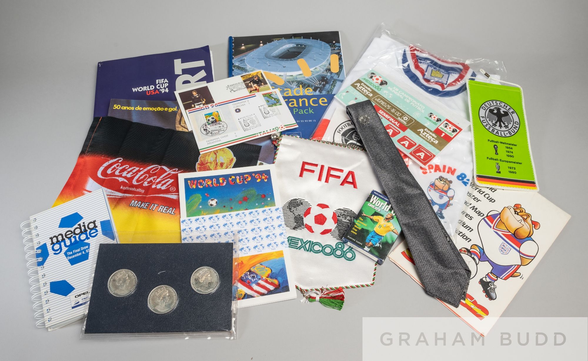 A collection of World Cup memorabilia 1982 to 2006, including coins, postcards, clothing, occasional autographed items, ephemera, pennants, press & media, reports, tickets, guides, etc.