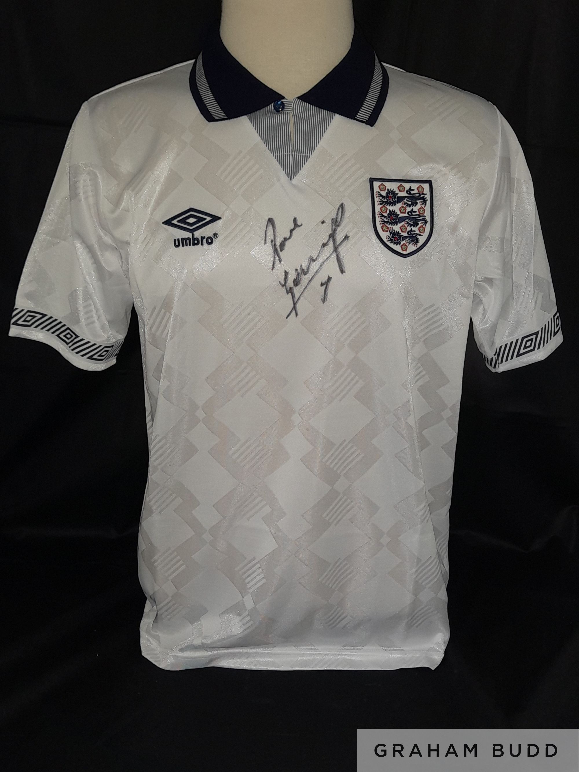 Paul “Gazza” Gascoigne signed England replica shirt as worn by the team during Italia 90 and The Tears Of Gazza moment