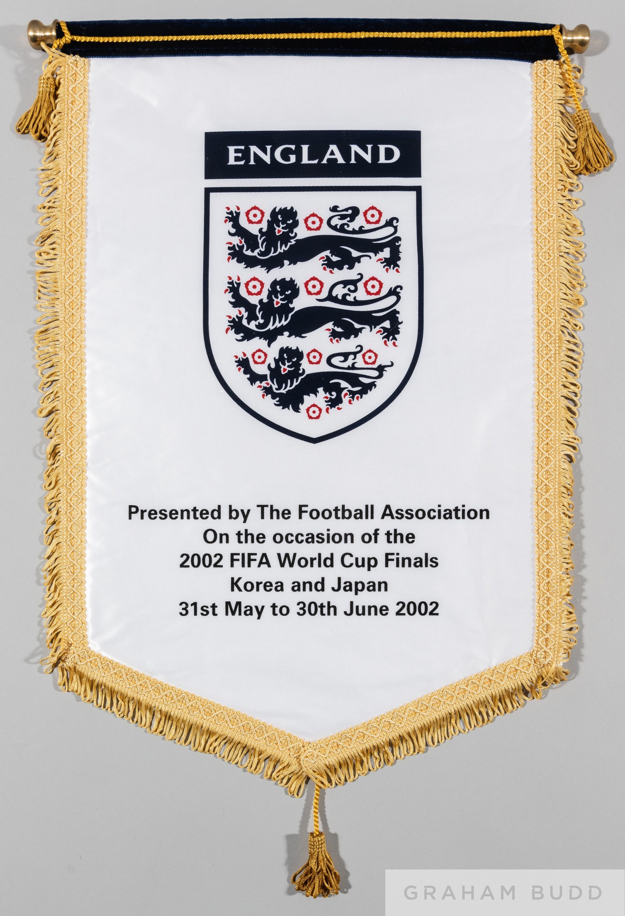 Official England pennant for the 2002 World Cup in South Korea and Japan, as presented by the Football Association