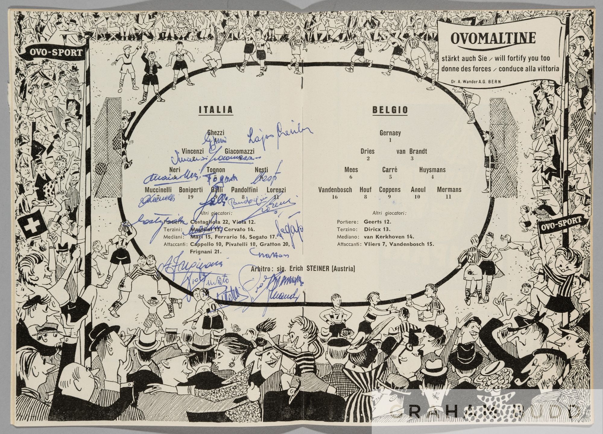 1954 World Cup programme signed by the Italy team in the Group 4 match v Belgium