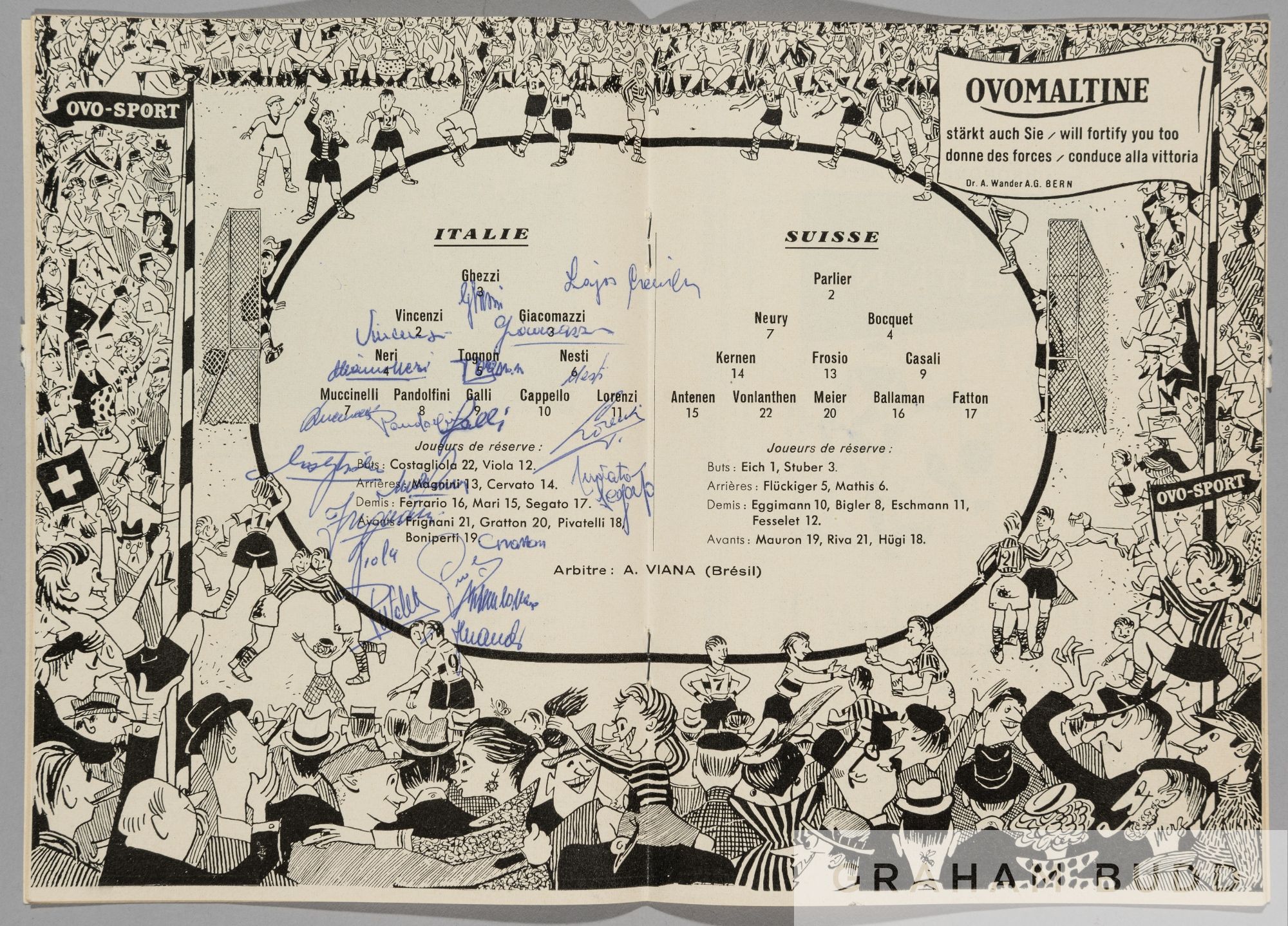 1954 World Cup programme signed by the Italy team in the Group 4 match v Switzerland