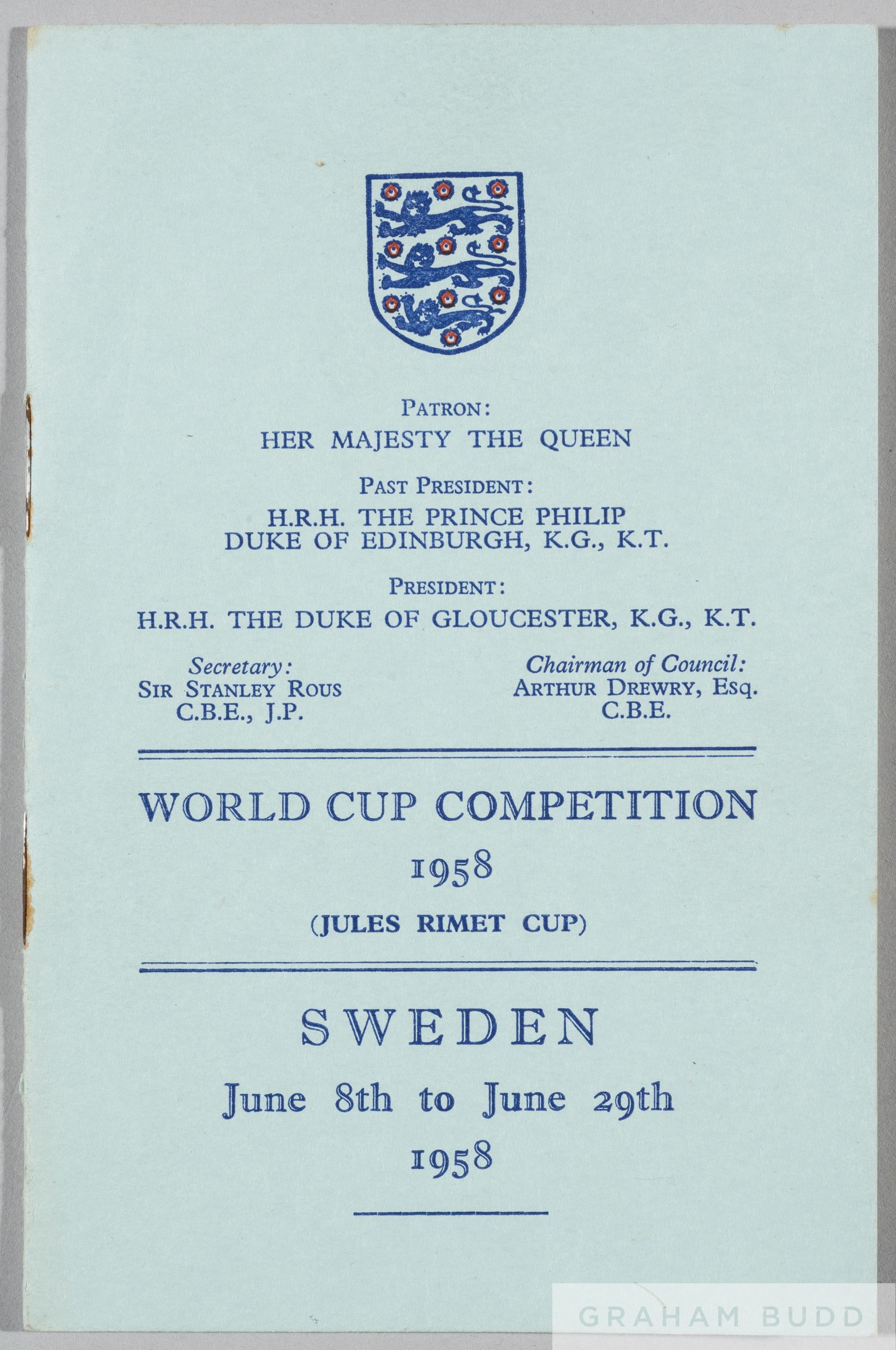 Official Football Association itinerary for the 1958 World Cup in Sweden, as issued to players and officials of the England football team, good condition