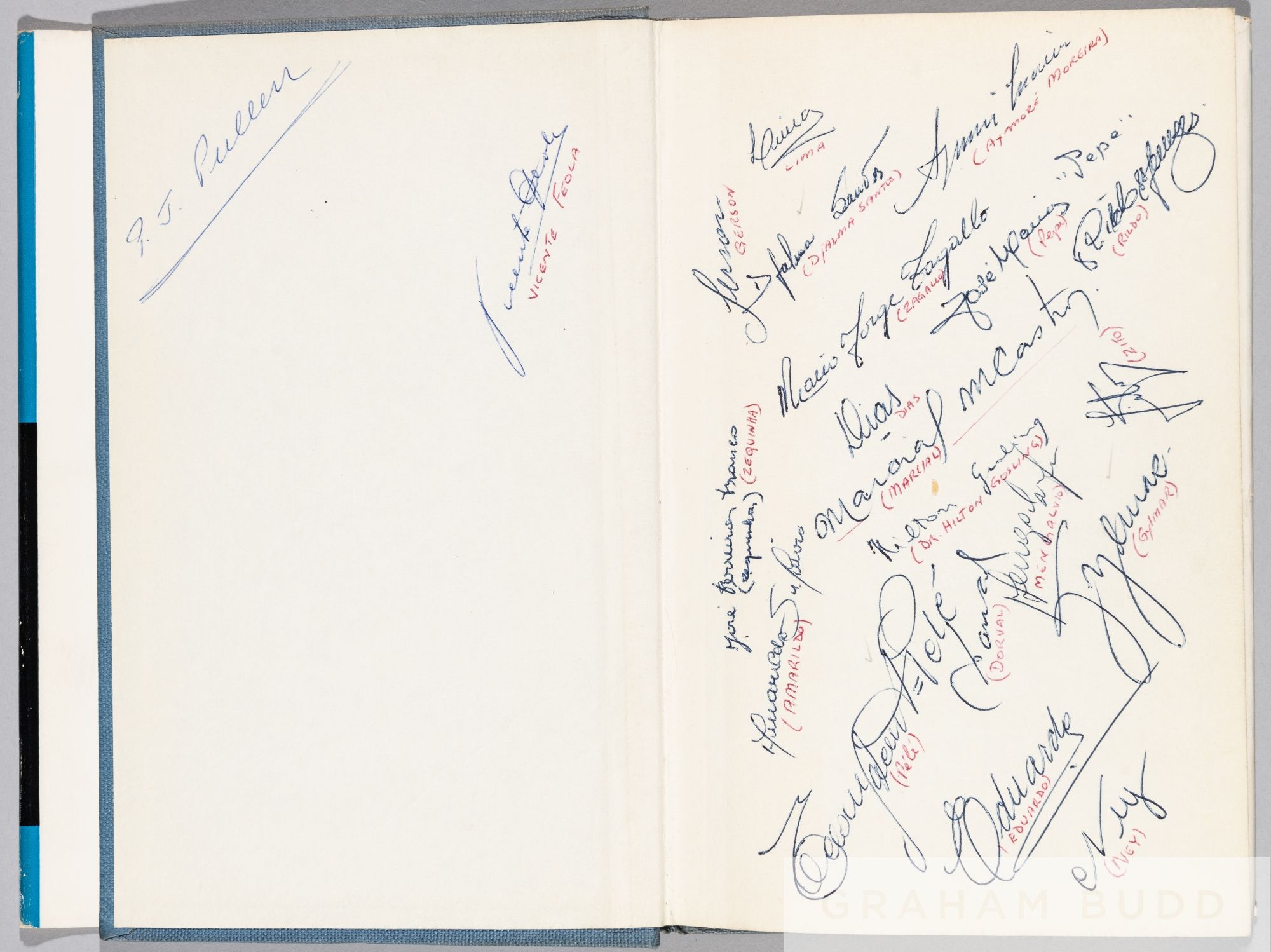 The Brazil book of football by Stratton Smith signed by members of the 1962 Brazil squad including Pele, Souvenir Press, hardback with d/j, 127-page, signed in pen on the frontispiece by approximately 20 players with printed name underneath signatures Condition fair to good with wear to d/j paper edge, wear to spine ends, slight page yellowing Provenance: from the Peter Pullen collection, FIFA representative 1958-86