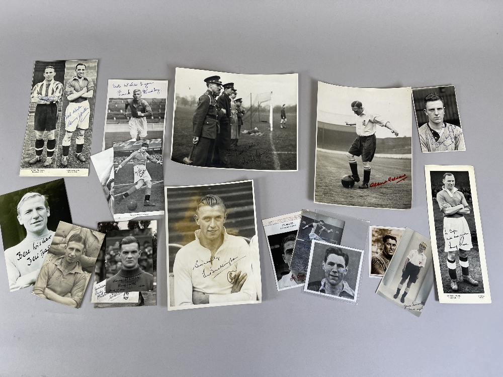 Excellent selection of signed Press postcards mostly 1930-40s, include Len Shackleton, Stan Cullis, Andy Beattie, Tommy Lawton, Walter Winterbottom,