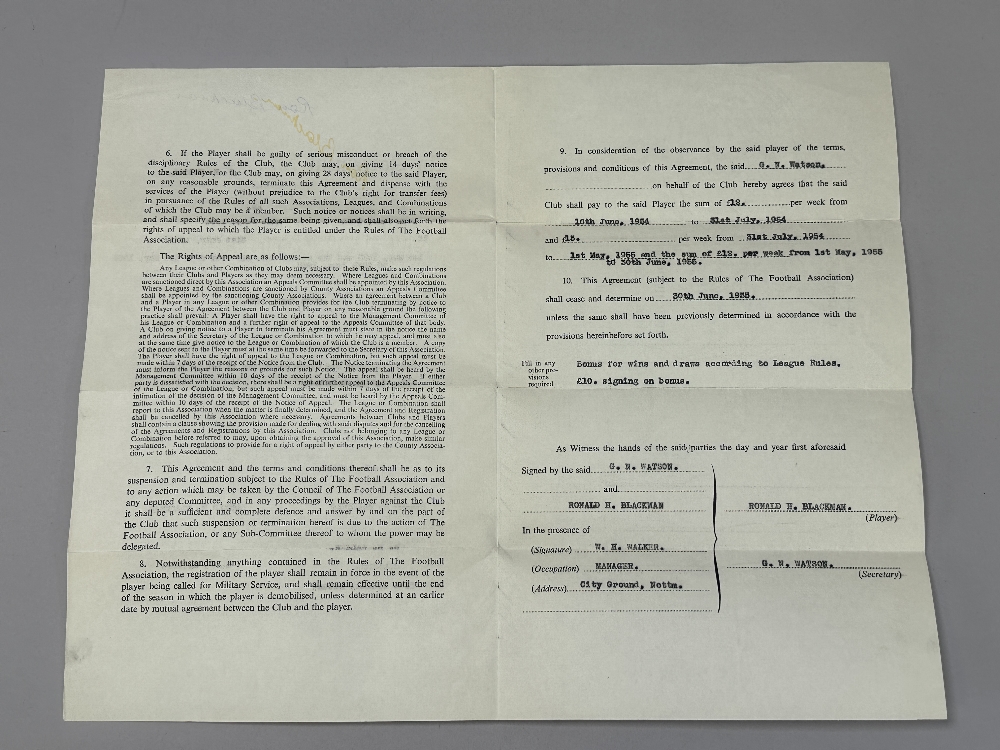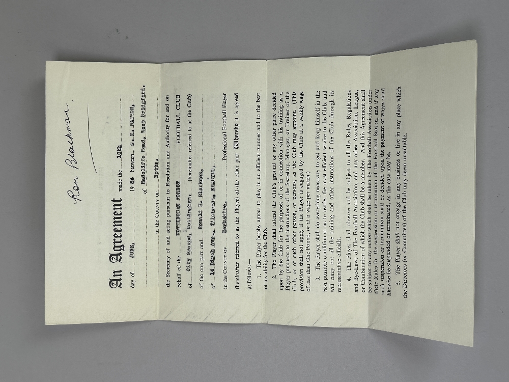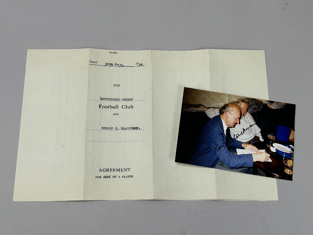 A player contract between Ron Blackman and Nottingham Forest, 1954 and a 35mm photographs signed by Ron Blackman (2)