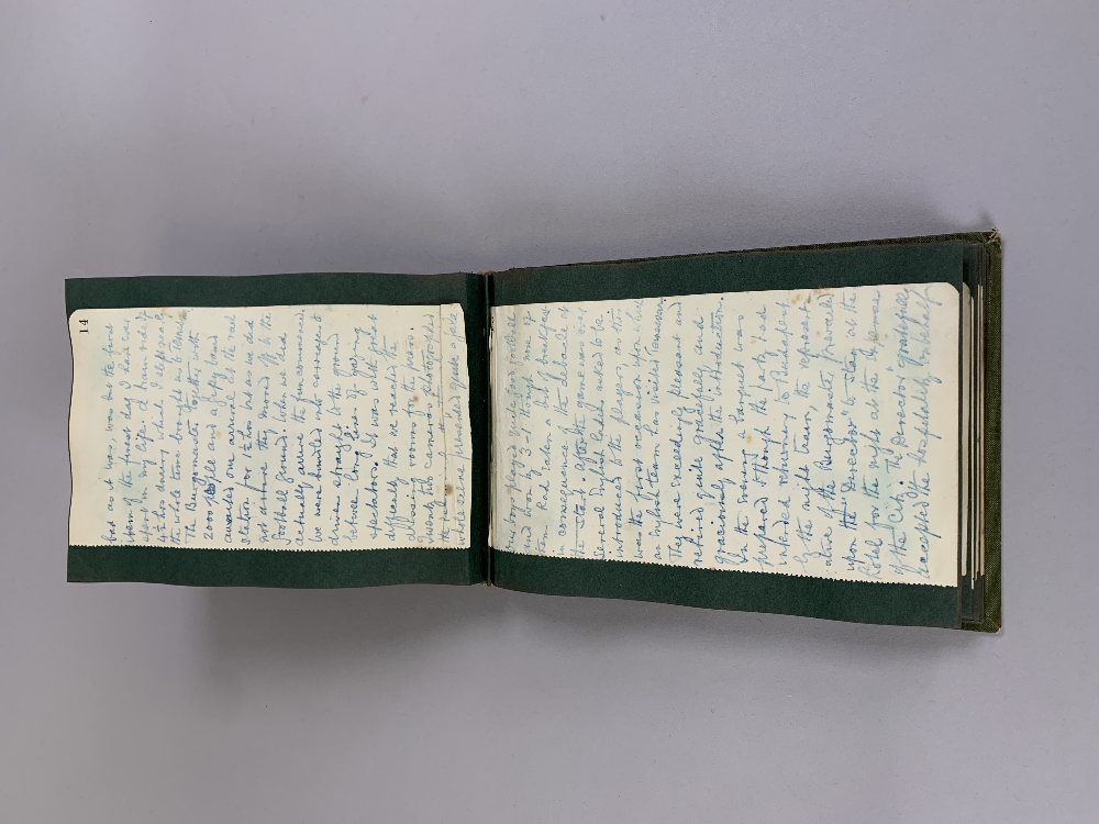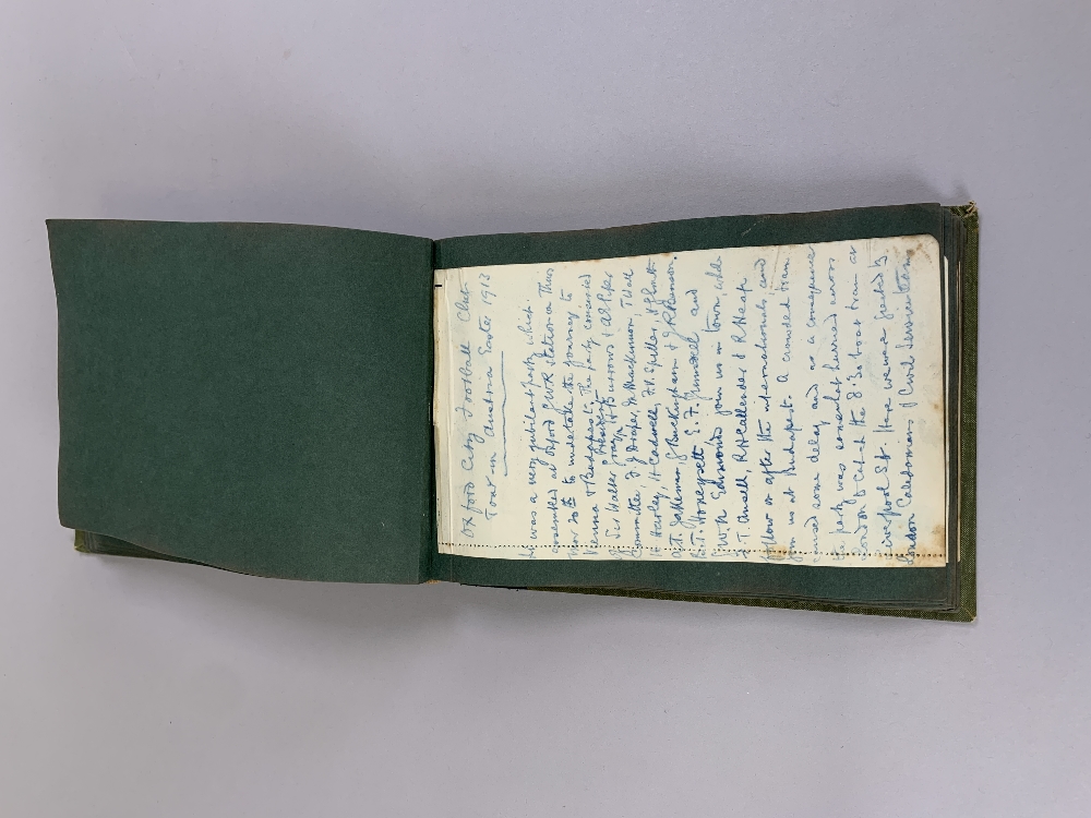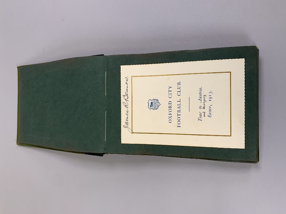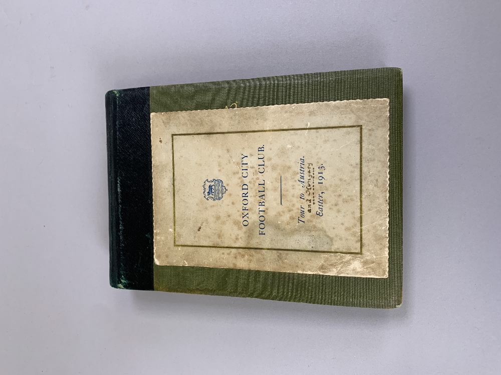 An interesting album relating to Oxford City Football Club Tour to Austria and Hungary, Easter, 1913, with itinerary, approximately forty-one black and white photographs of the tour including some match examples, business cards, a handwritten diary relating to the tour and a town map of Budapest, all stuck down within privately produced album