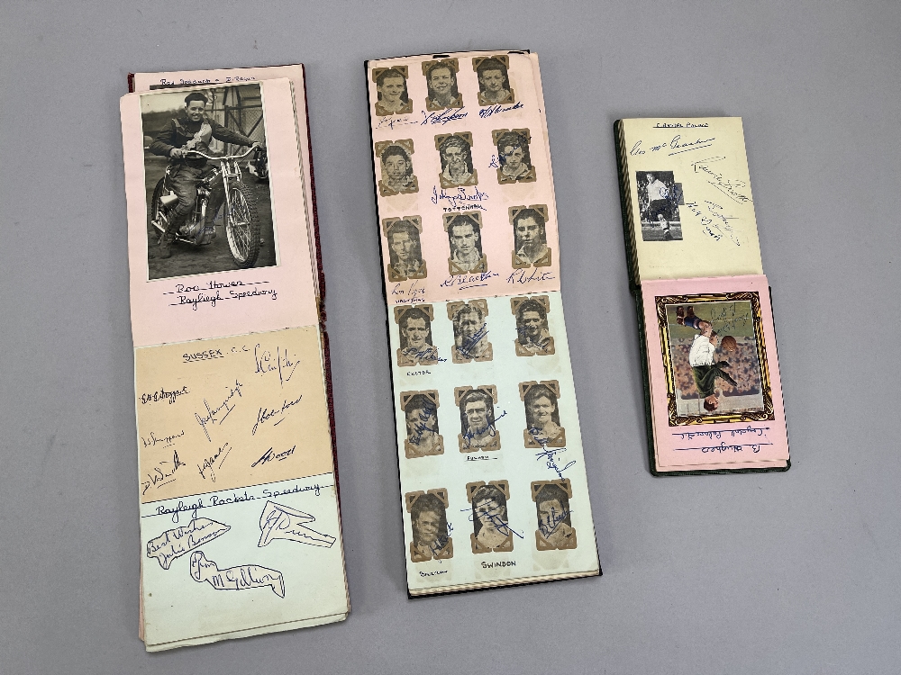 Three autograph books previously belonging to Bryan Horsnell, covering 1951-52 and 1952-53, fully signed cut-outs and pages of teams, mostly full teams, majority 3rd division South teams of period, including Reading, Plymouth Argyle, Crystal Palace, Watford and some reserve teams, West Ham United, Portsmouth. Also small amount of cricket and speedway (3) Possibly collected by Bryan Horsnell at Reading FC