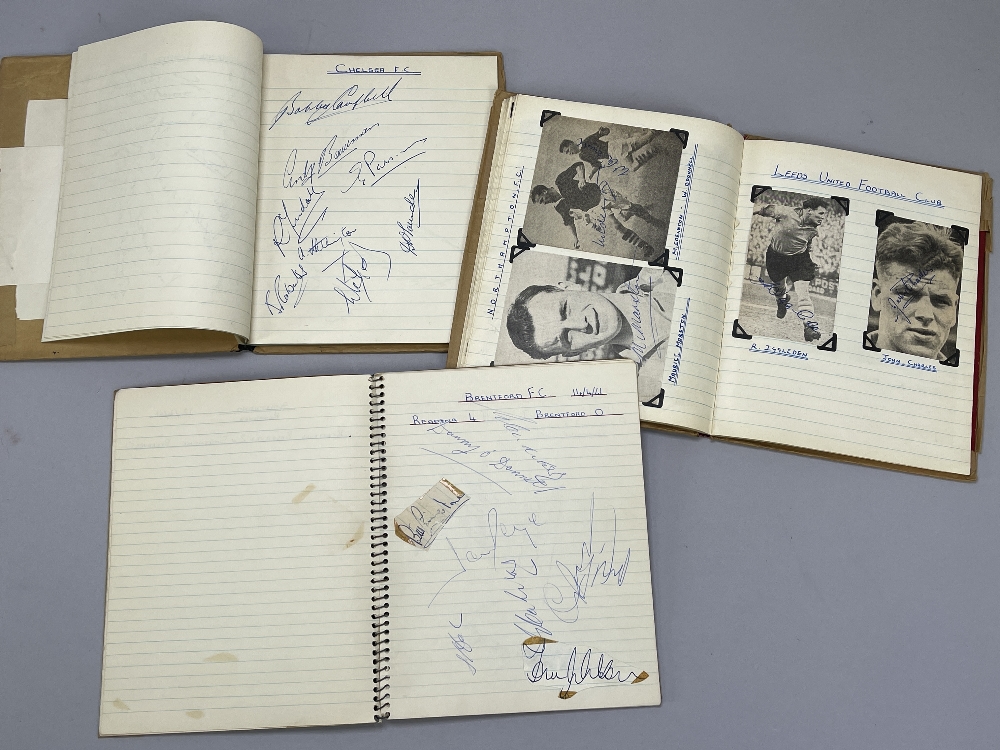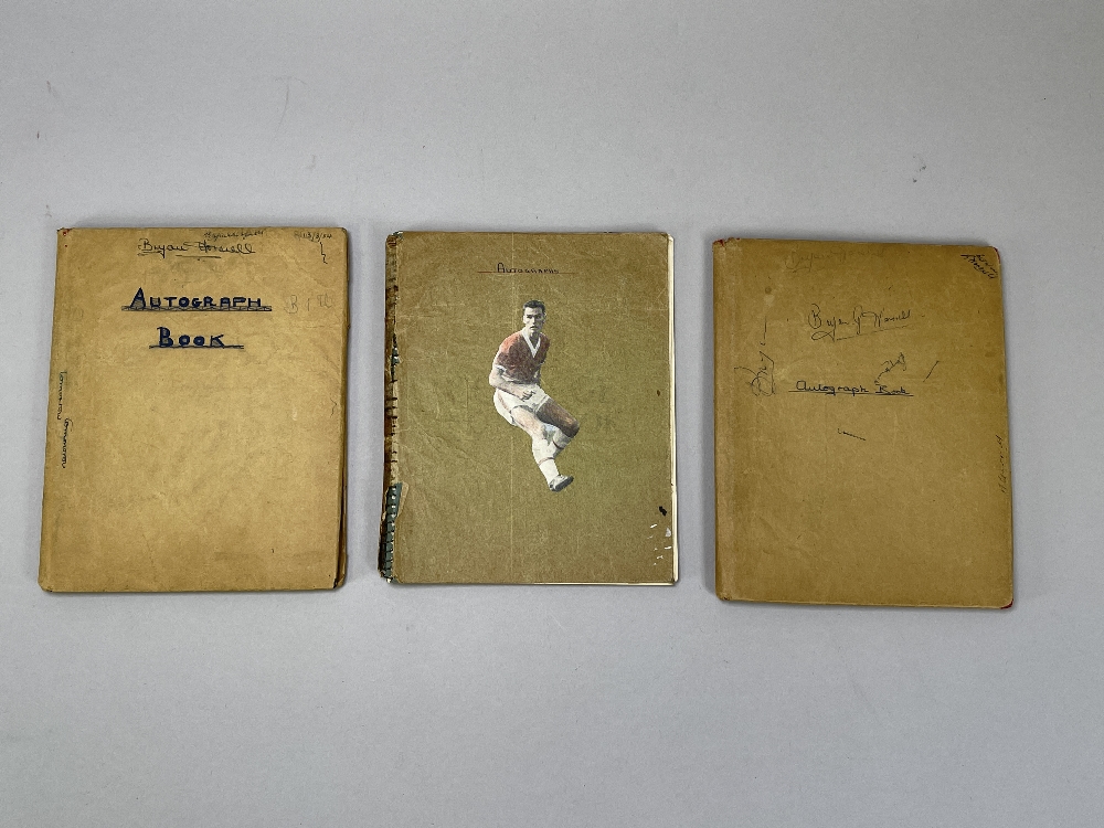 Autographs in exercise books, mainly circa 1953-54, previously belonging to Bryan Horsnell, possibly collected at Reading FC. Mostly pages of teams autographed with mixture of 3rd division South teams of period and others, include Arsenal, Blackpool, Coventry City, Shrewsbury Town, Northampton, etc., (3)