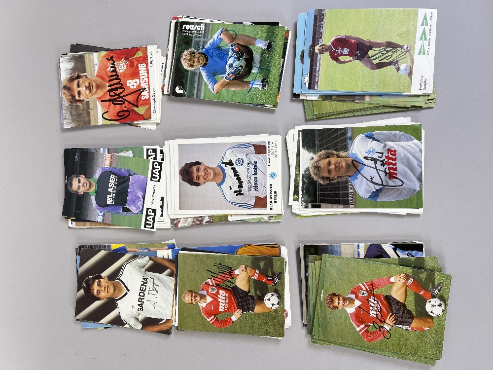 Substantial collection of autographed German Walker print coloured postcards, circa 1980s, covers mostly German teams, noted Schalke 04, Borussia Monchengladbach, Einfract Frankfurt, FC Koln, many league German players of period, (approx. 290)