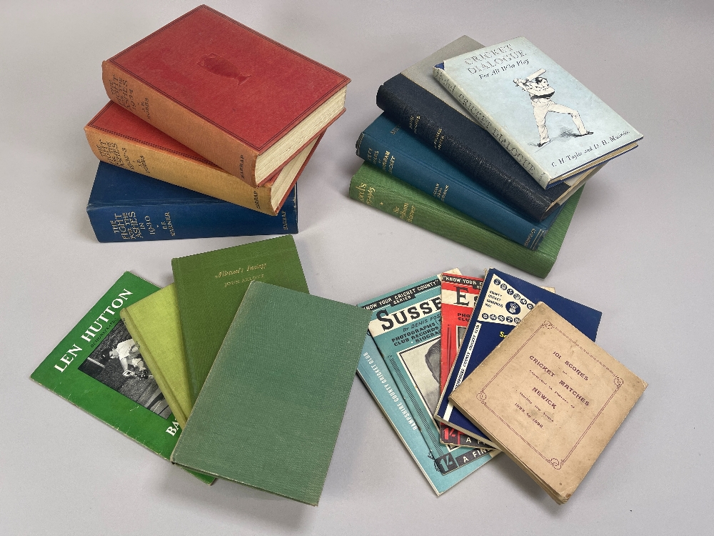 The Fight for the Ashes in 1930 by P.F. Warner, The Fight for the Ashes, 1932-33 and 1934 by J.B. Hobbs, Long Innings by Sir Pelham Warner and a coll
