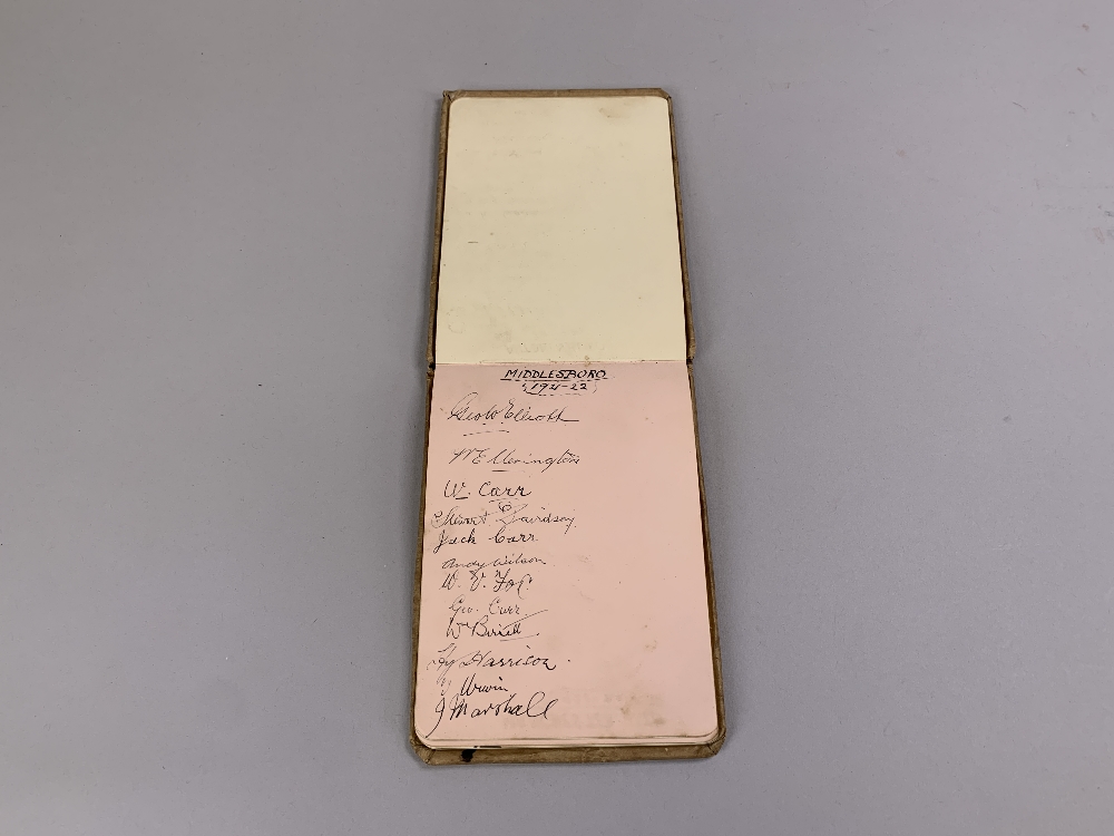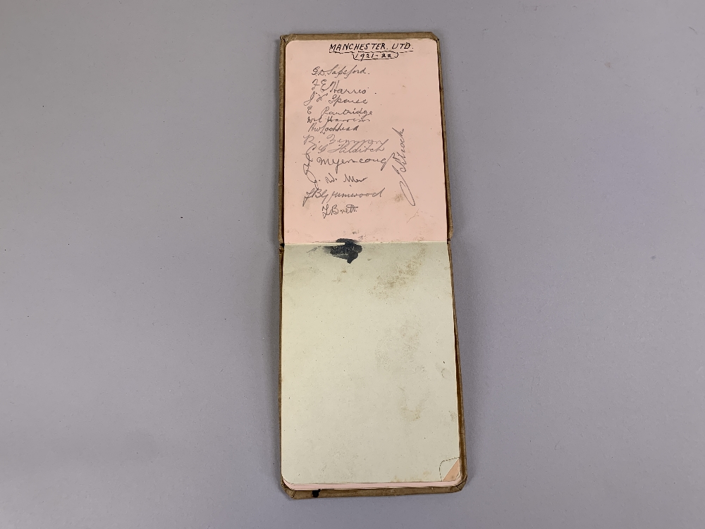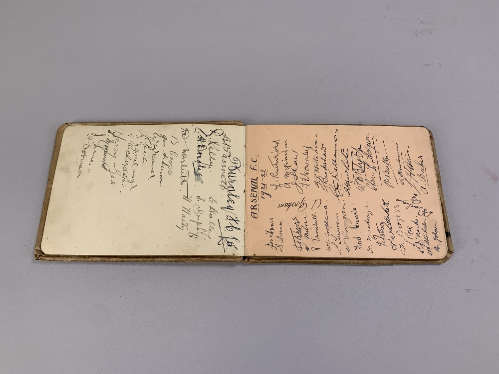 A nice collection of team autographs from the 1920s comprising Manchester United, Arsenal, Burnley, Bradford City, Newcastle United, Leicester City, Preston North End, Liverpool, Aston Villa, Middlesbrough, Cardiff City in autograph album