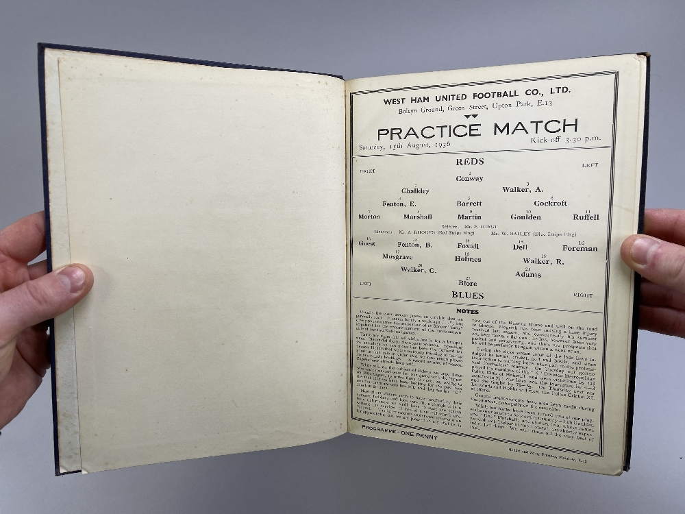 Bound volume of West Ham United home match programmes, 1936-37 from Reds v. Blues, 15th August 1936 to Walthamstow Avenue v. Haynes, London Senior C