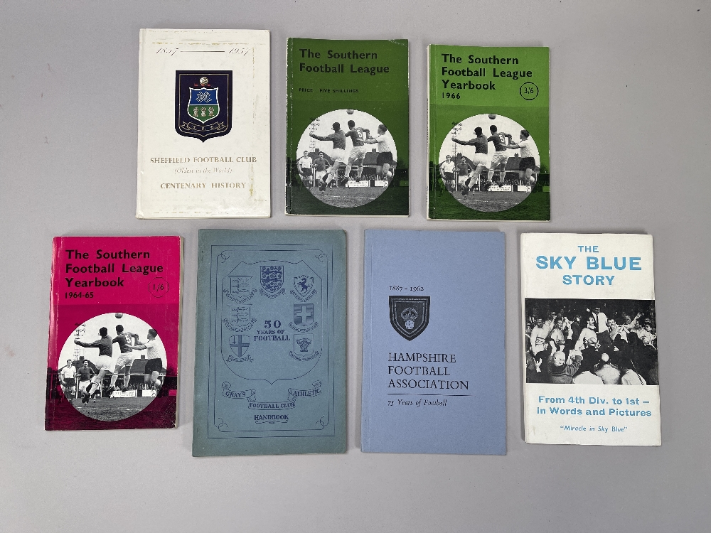 Collection of various publications and yearbooks including Southern League Yearbook 1964-65, 1965-66, 1966-67 (3), Hampshire F.A. 75 years 1887-1962,