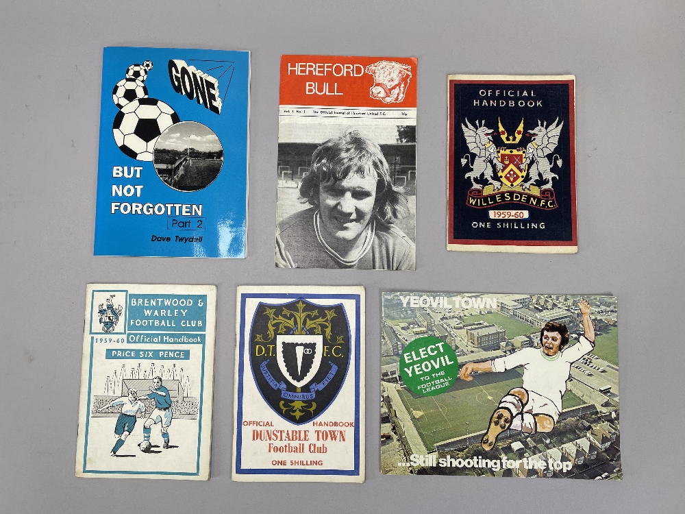 Collection of Non-League handbooks, (20), includes Brentford v Warley 1959-60, Guildford 1955-56, Willesden 1959-60, Dunstable 1960-61; sold with mixed selection of Non-League items Yeovil application to join Football League 1973, 'Gone but Never Forgotten' by Dave Twydell, Hereford Bill Journal vol.1 No.1, (45)