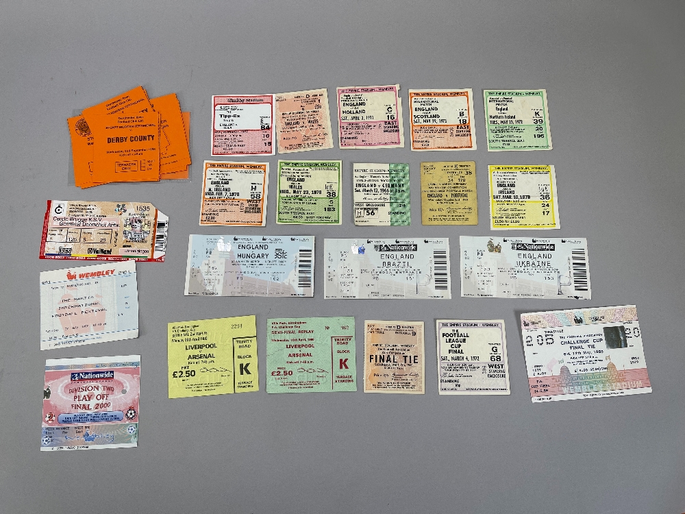 Football selection includes tickets, reviews, etc., including F.A. Cup Final 1960 and 1988 (2), League Cup Final 1972, England international (14), Hibernians v Rangers 23/3/1968, Manchester v Arsenal 1/8/1999, (80), sold with Football League Reviews and collection of ex-League teams, Barrow, Southport, Bradford PA, etc., (90), (large quantity)