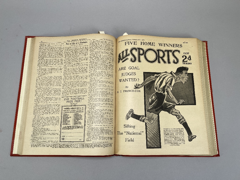 Twenty-two volumes of All Sports Weekly from 1919 to 1930 No.1, 1919 to No.556, 1930, in red covers, three volumes of Football Specials, 1921, 1922 a