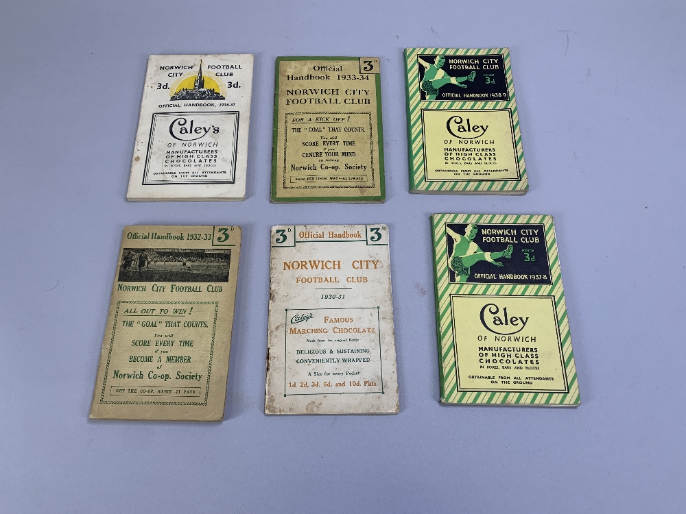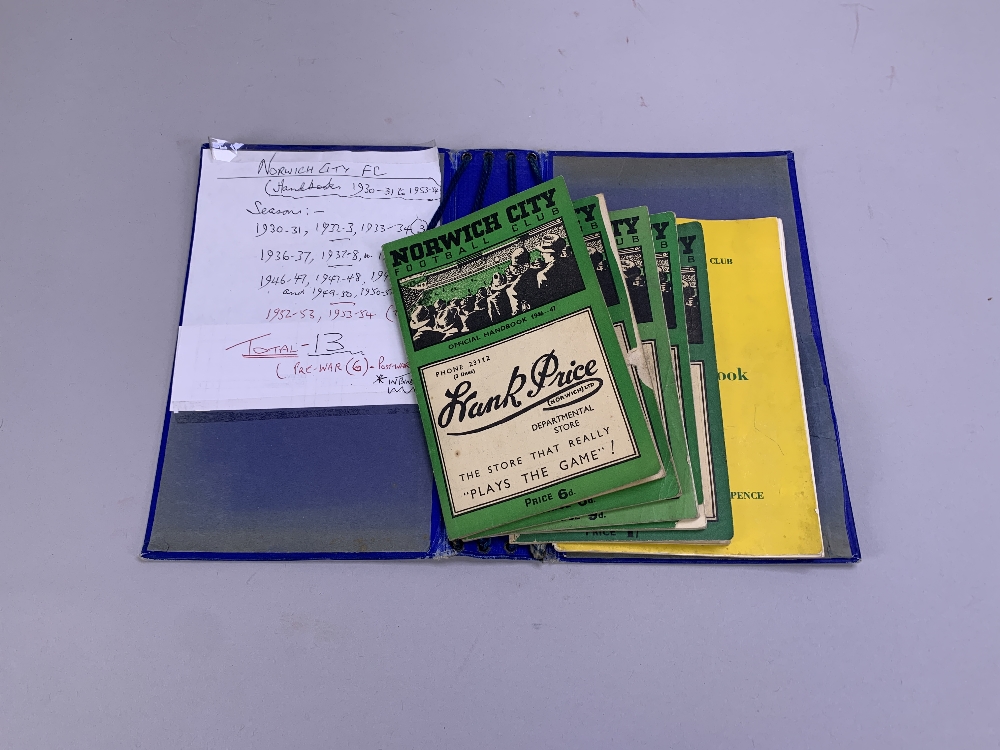 Thirteen Norwich City handbooks, 1937-38 to 1953-54 comprising 1930-31; 1932-33; 1933-34; 1936-37; 1937-38; 1938-39; 1946-47; 1947-48; 1948-49; 1949